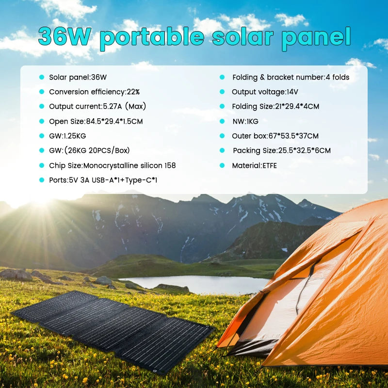 100W Solar Panel Portable Folding 54W 36W 21W Solar Generator for Camping Balcony photovoltaic panels Waterproof