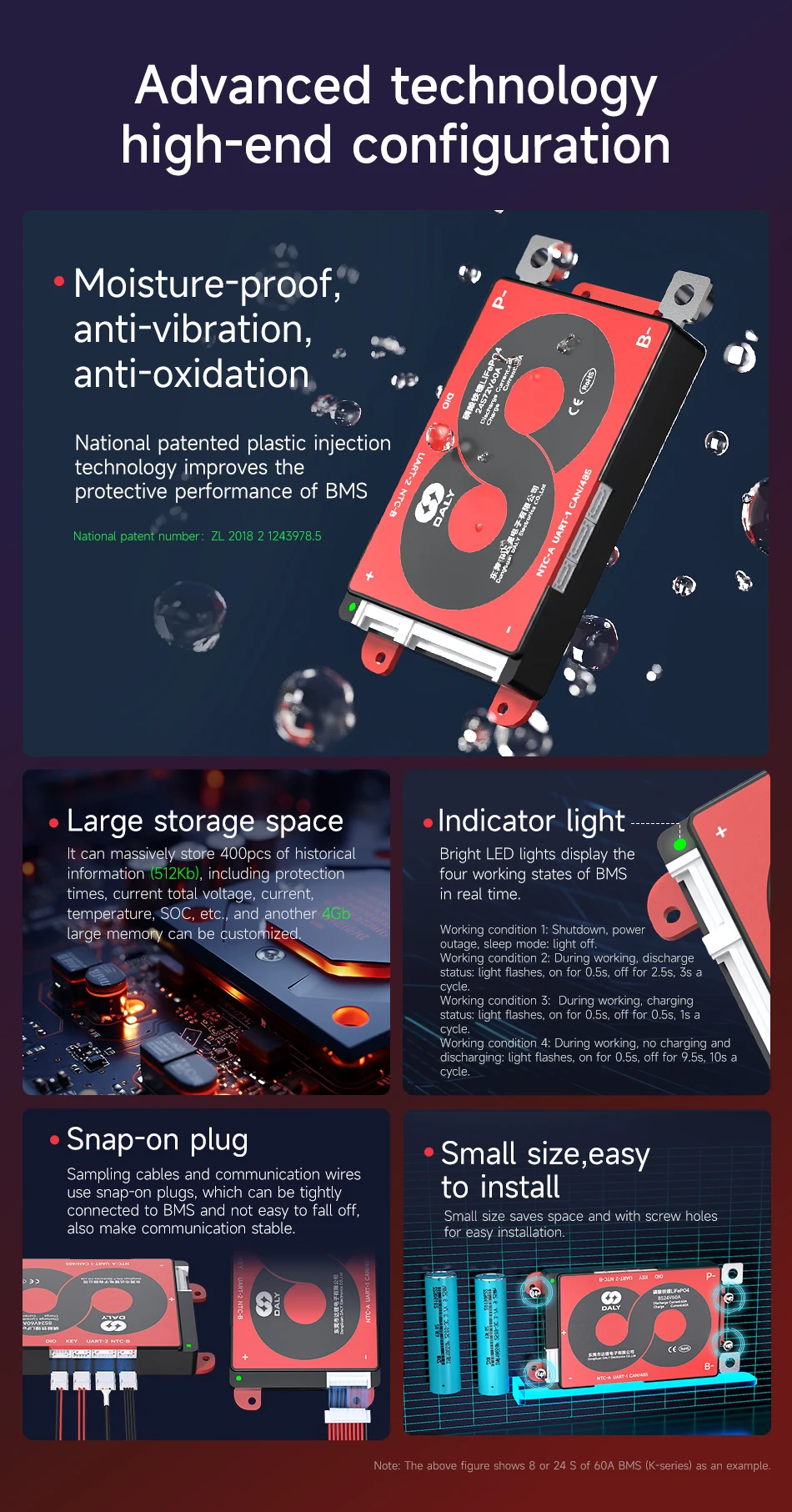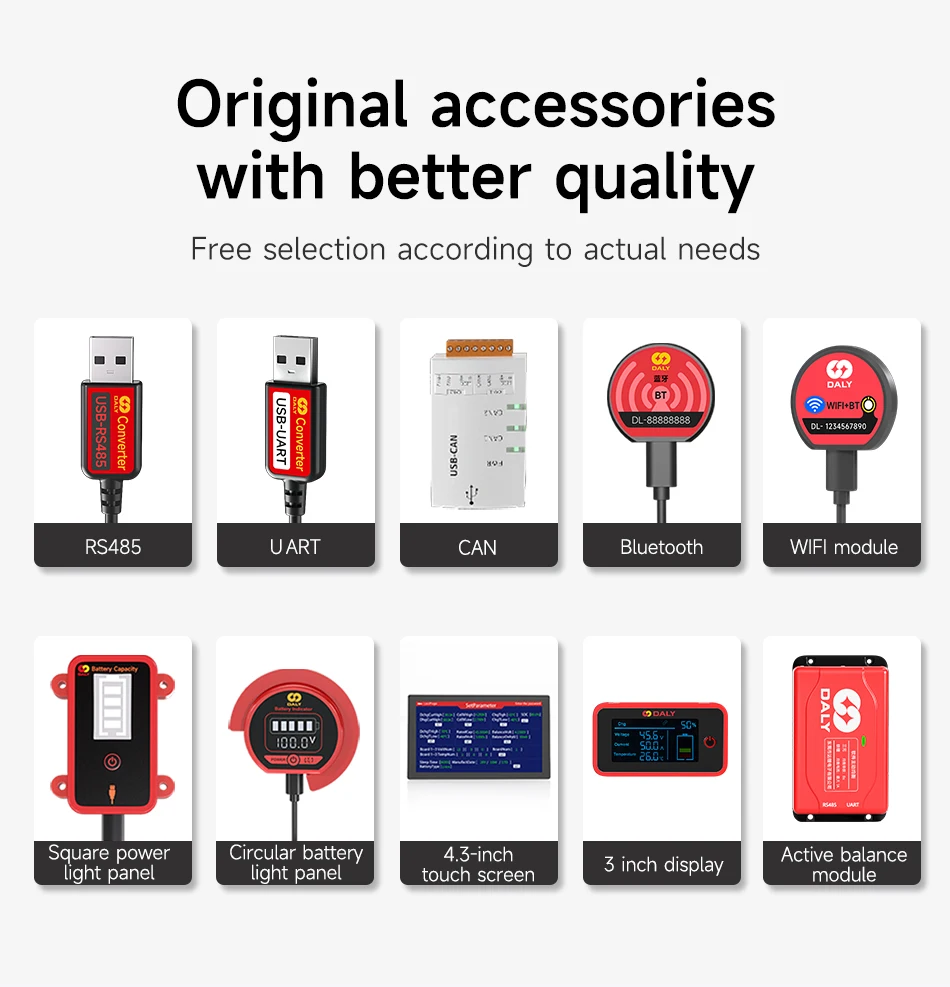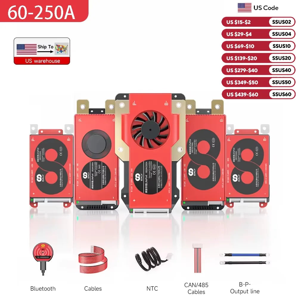 Daly Smart BMS for LifePo4 4S 12V 8S 24V 16S 48V 100A 250A Bluetooth RS485 CANBUS Communication Solar Battery Wide Application