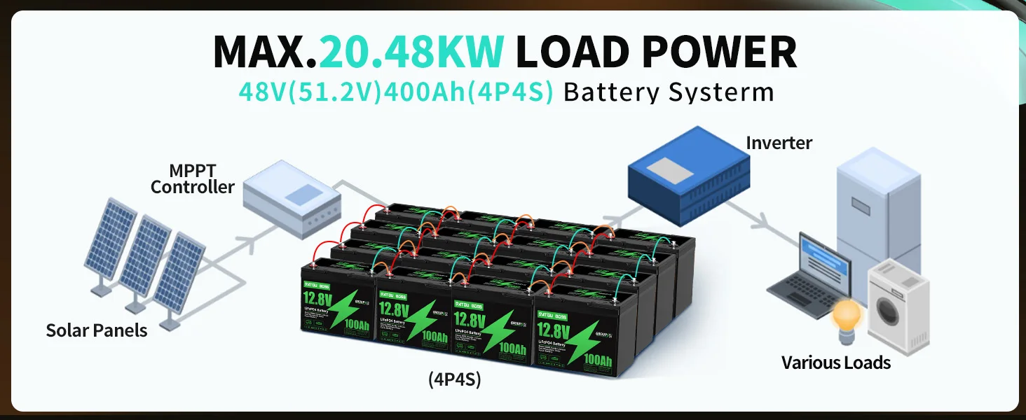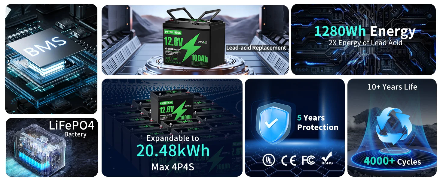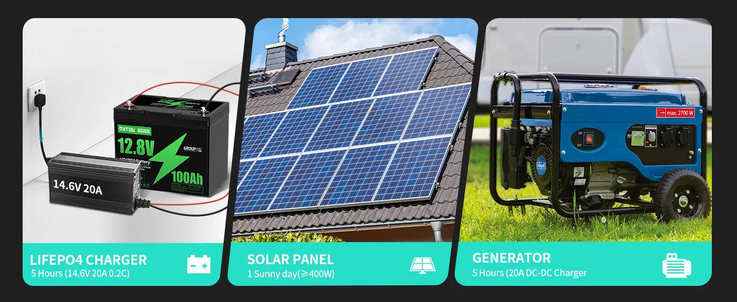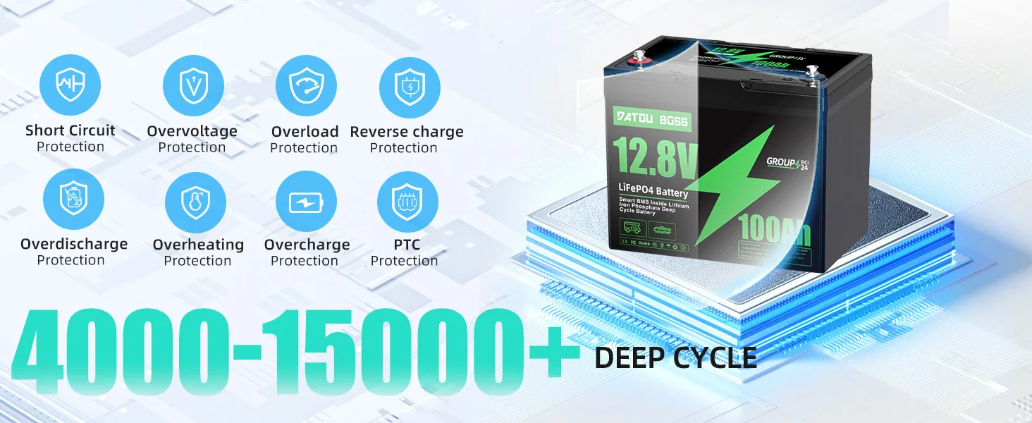 DATOUBOSS 24V 36V 48V 100Ah 1280Wh Lithium Battery Lifepo4 Built-in Smart BMS Max Charge Current 50A