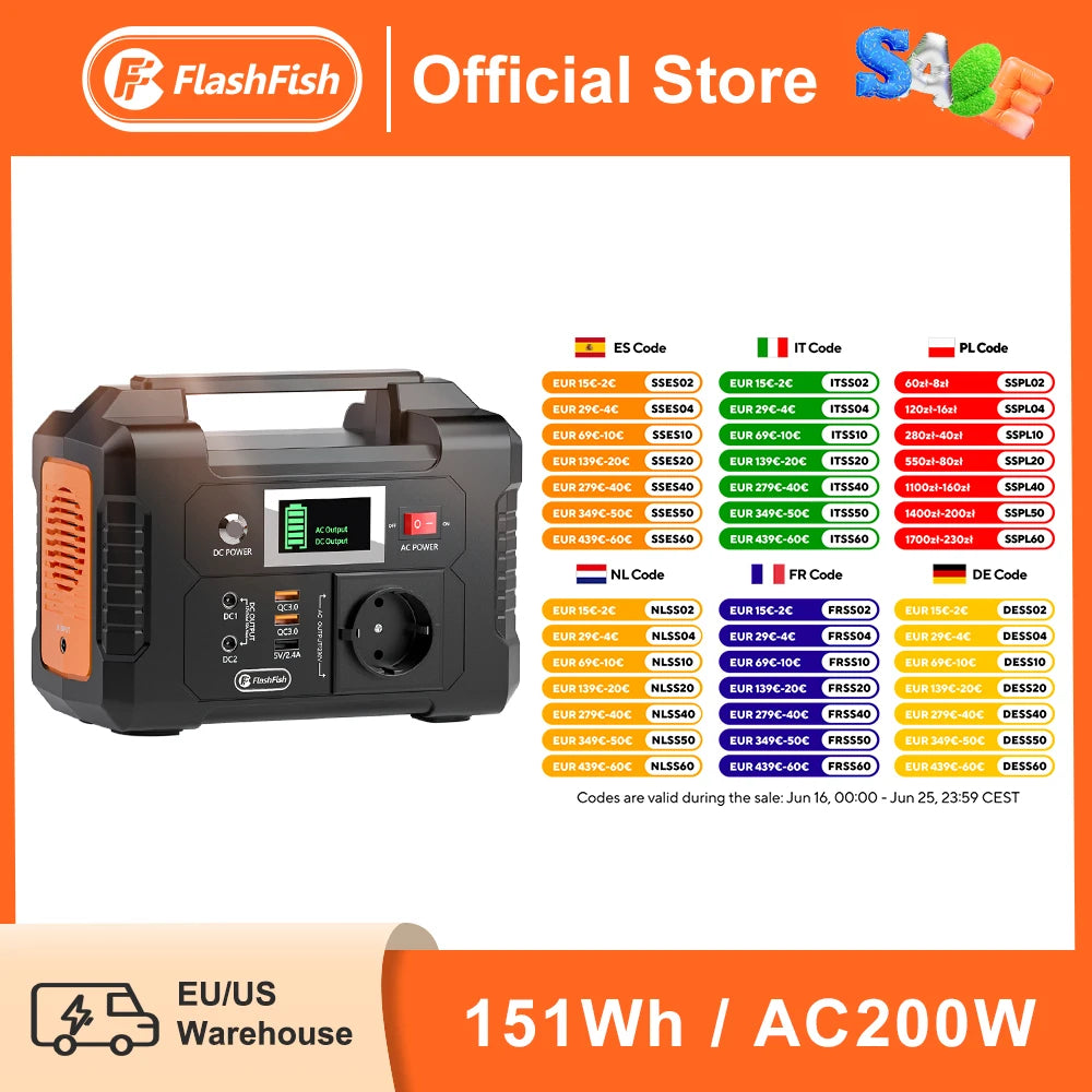 FF Flashfish 200W Portable Power Station 151Wh Solar Generator 230V AC DC Batteries Supply Outdoor Battery for Solar Panel Drone