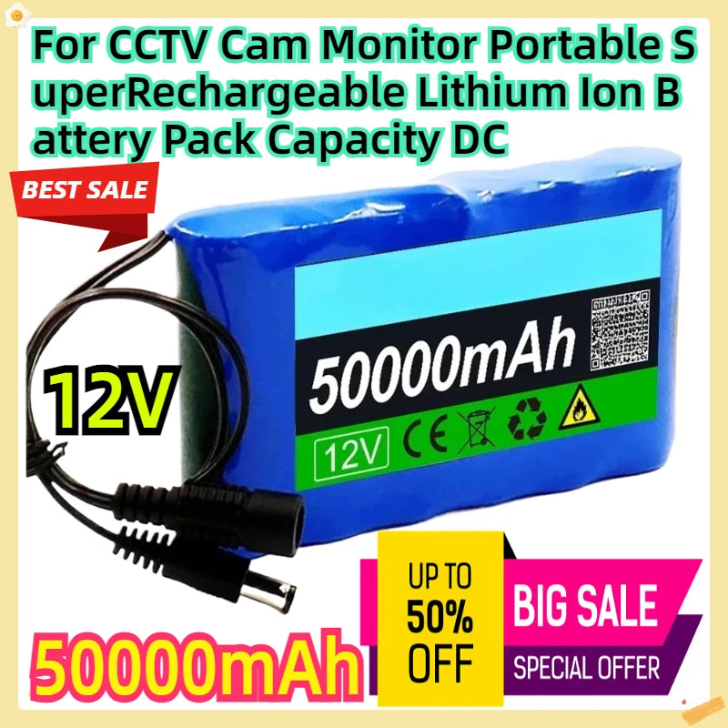 For CCTV Cam Monitor Portable Super 12V 50000mah Rechargeable Lithium Ion Battery Pack Capacity DC