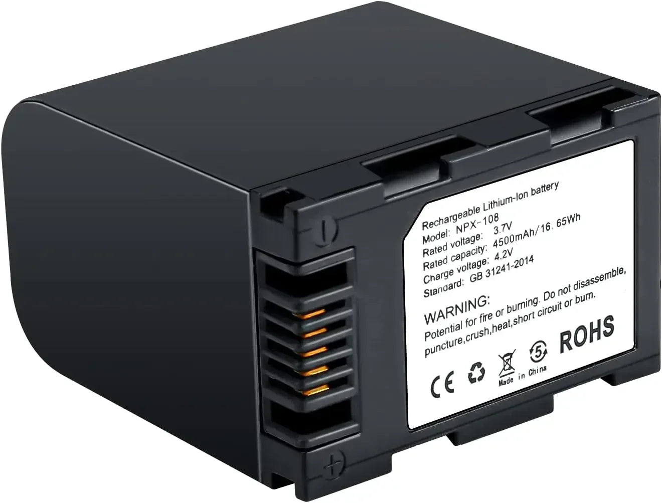 HIGH CAPACITY LONG LASTING POWER: NPX-108 rechargeable camcorder battery with a capacity of 4500mAh provides long-lasting power for your camcorder, so you no longer worry about the problem of low power.