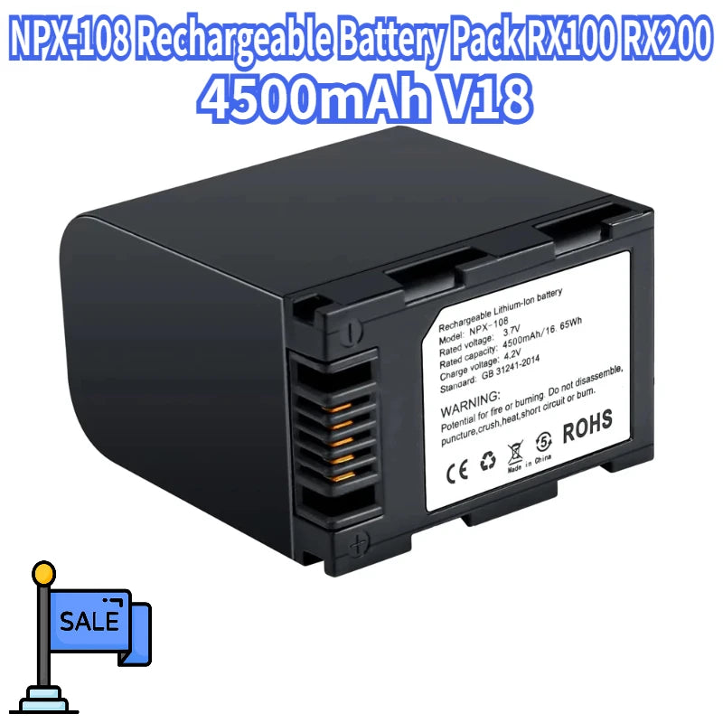 Hot sale 4500mAh V18 NPX-108 Rechargeable Battery Pack RX100 RX200 Camera Battery/Dual Charger for for Video Camcorders