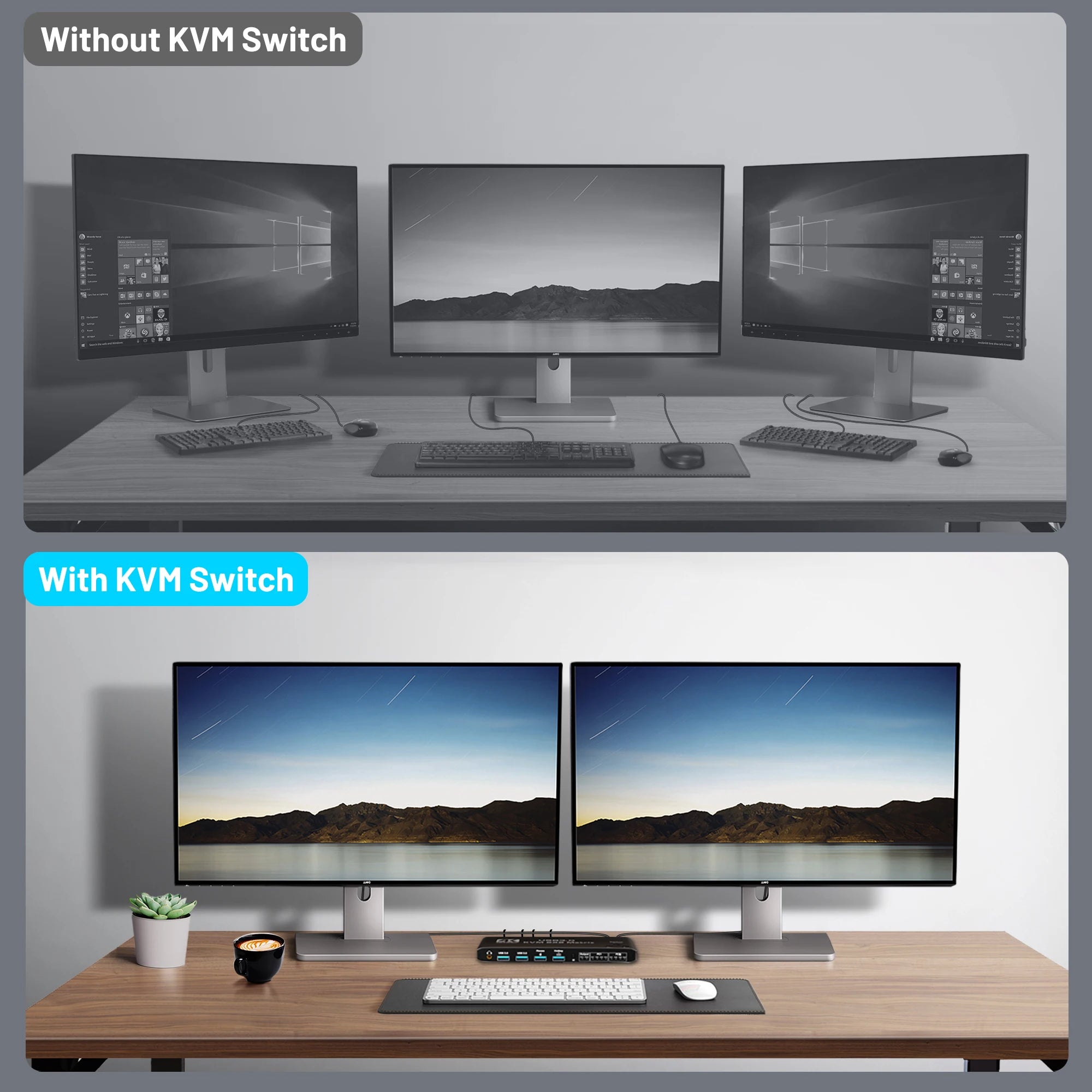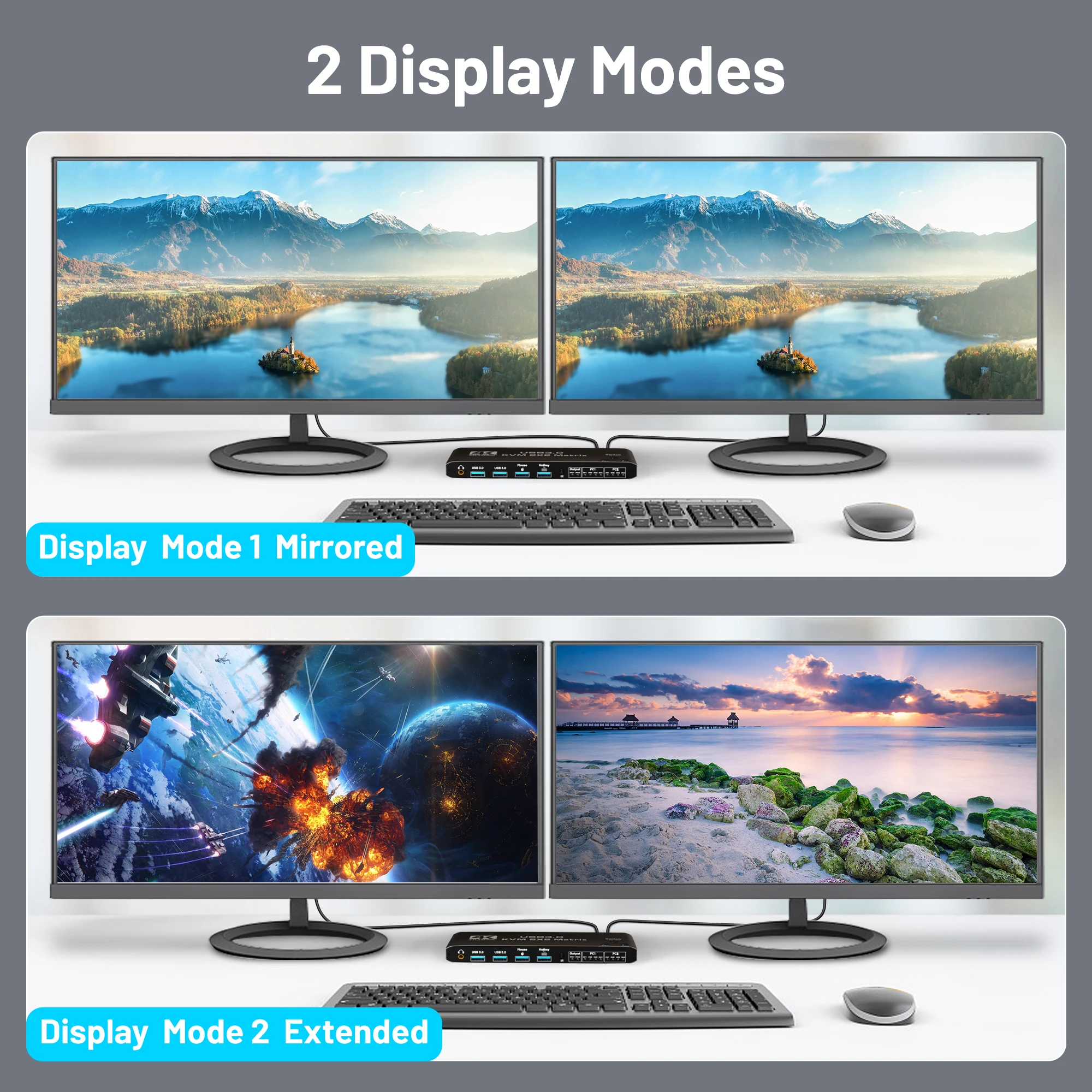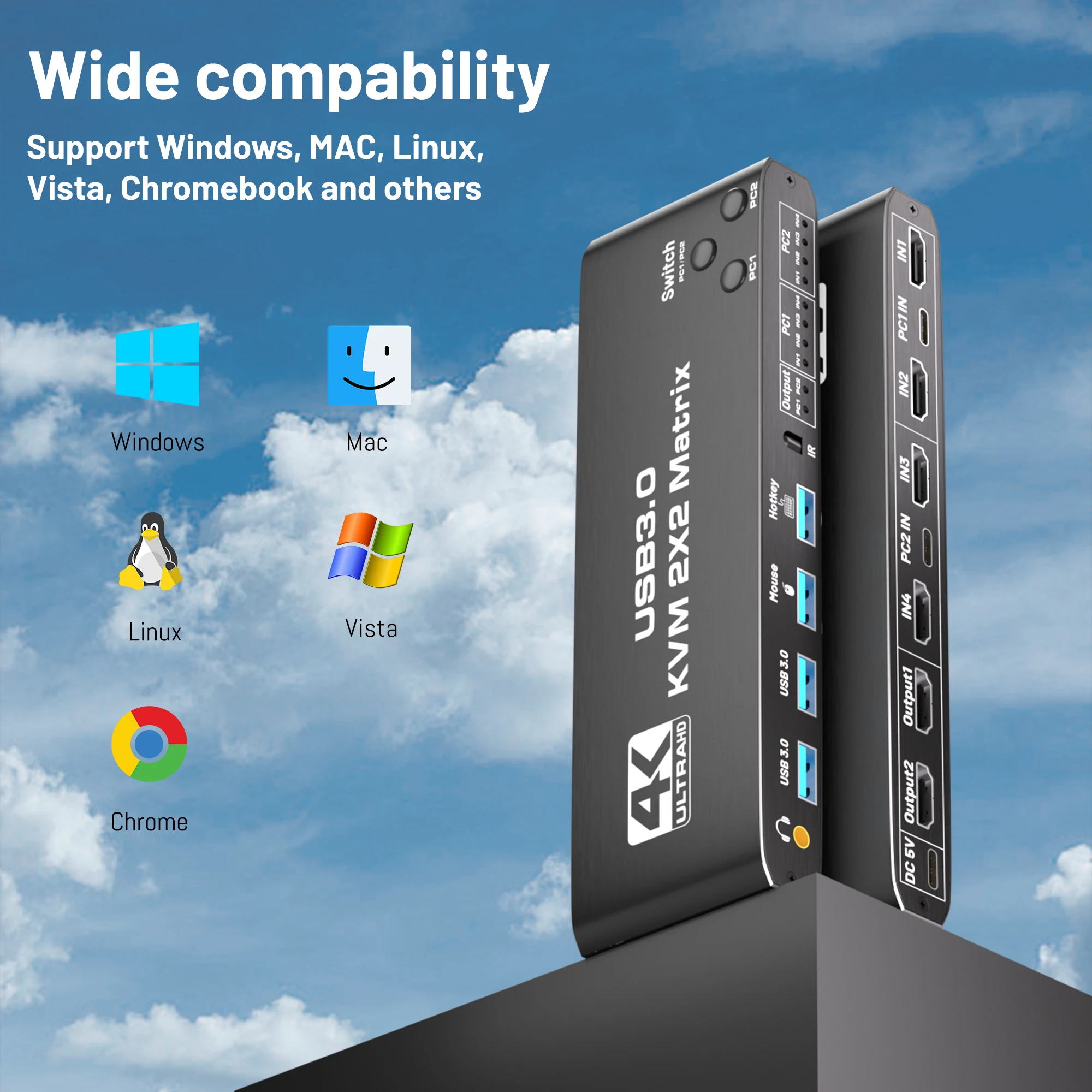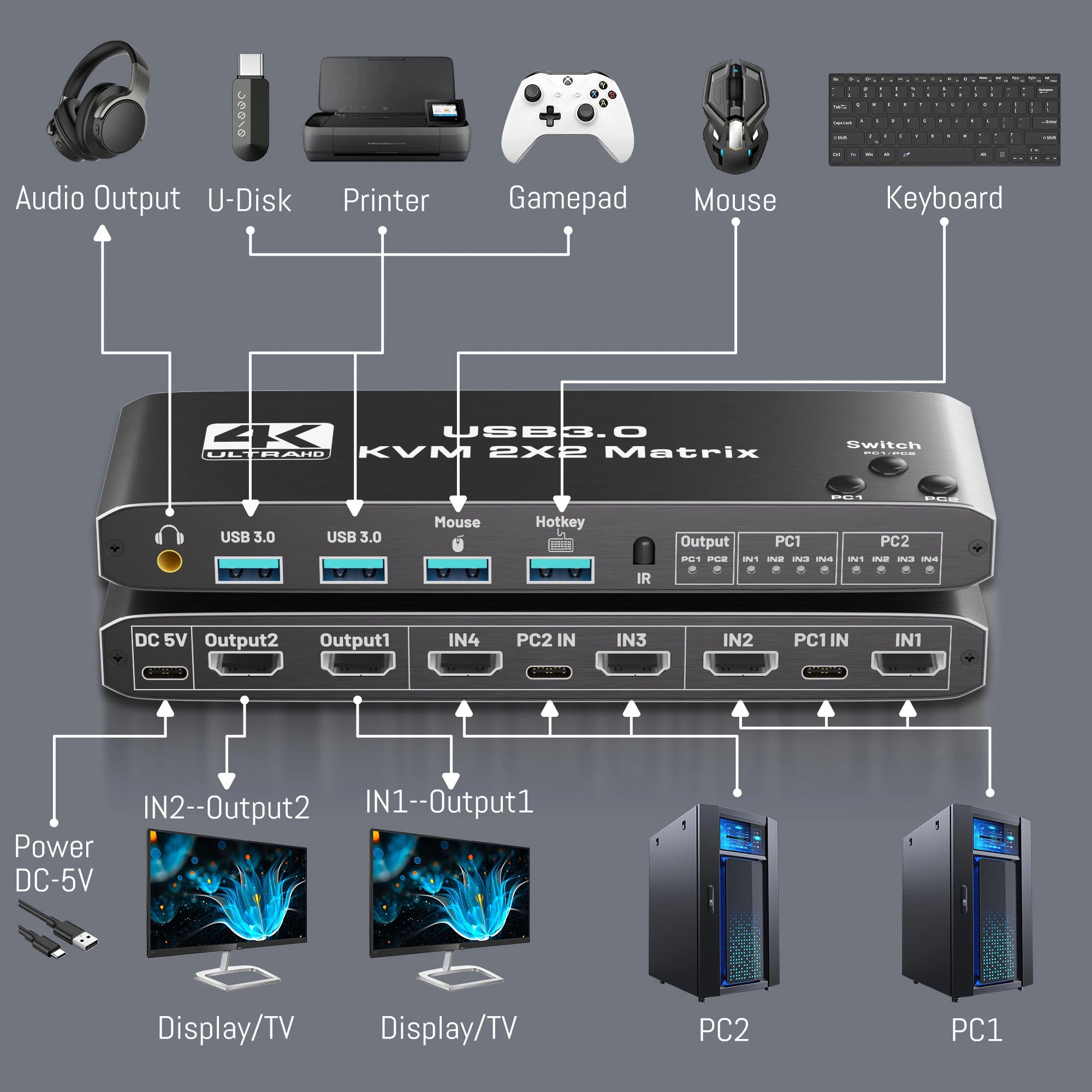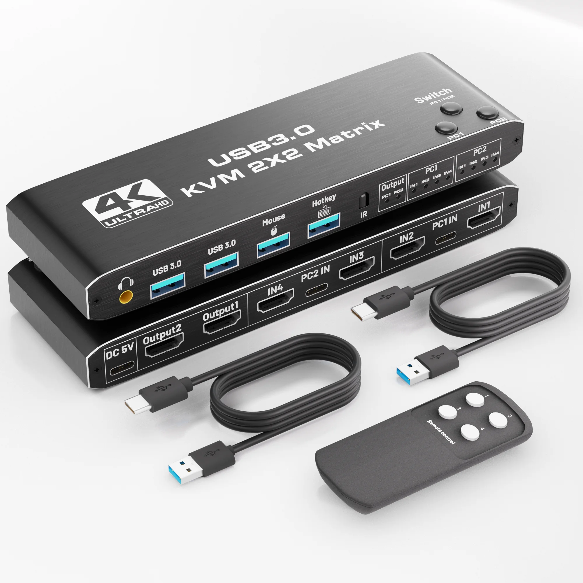 KVM-HDMI2.0b KVM USB3.0 2x2 matrix 4K/60HZ with hotkeys/expansion, powered, black.