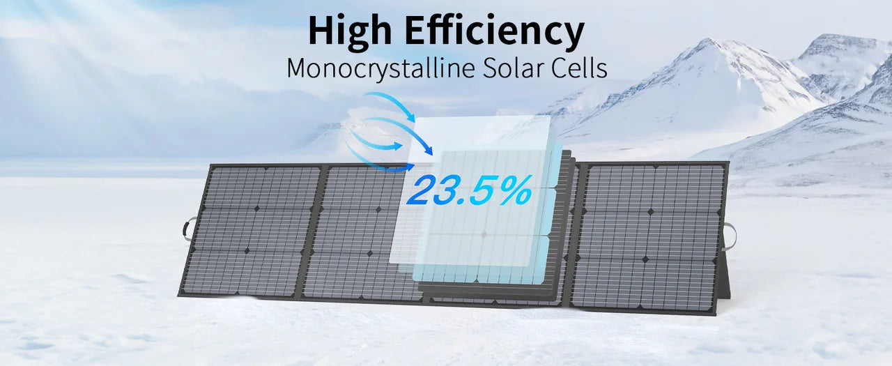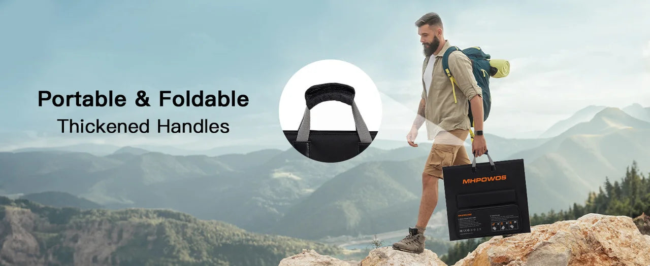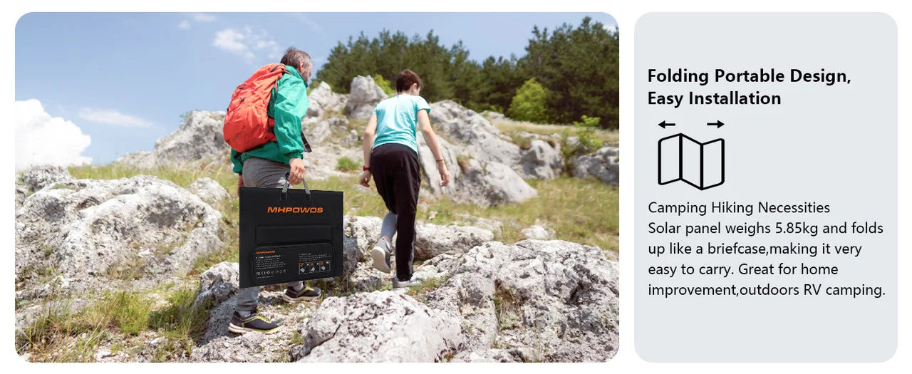 MHPOWOS 220W foldable monocrystalline solar panel has high conversion efficiency, which is up to 23.5%. 40V 220W foldable solar panel generates more energy and perform better than conventional solar panels in any weather.