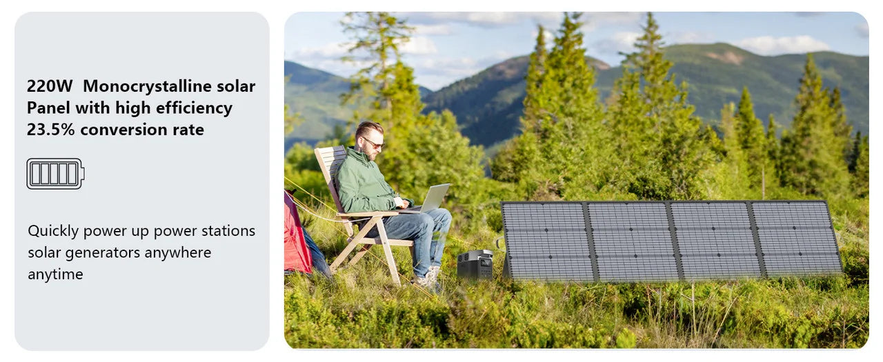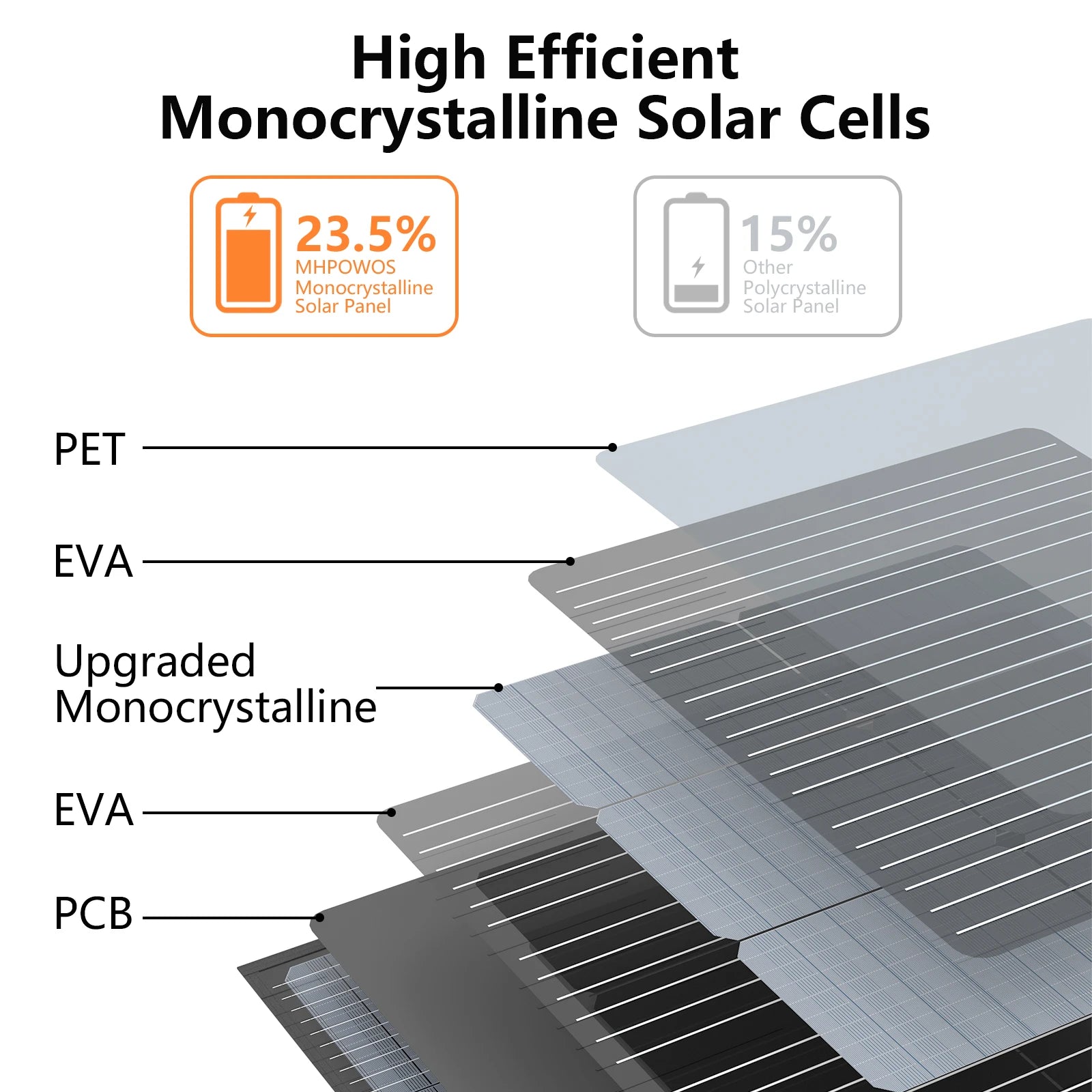 MHPOWOS 220W Solarpanel is made of industry-leading monocrystalline silicon, with a conversion rate of 23.5 %, Quickly power up your devices such as powerstation&Solargenerator, computers, etc. anywhere, anytime.