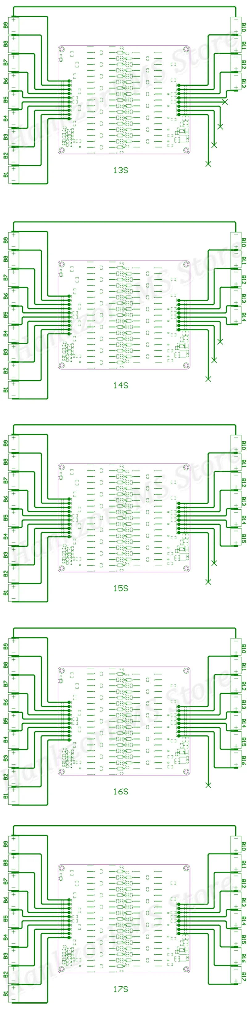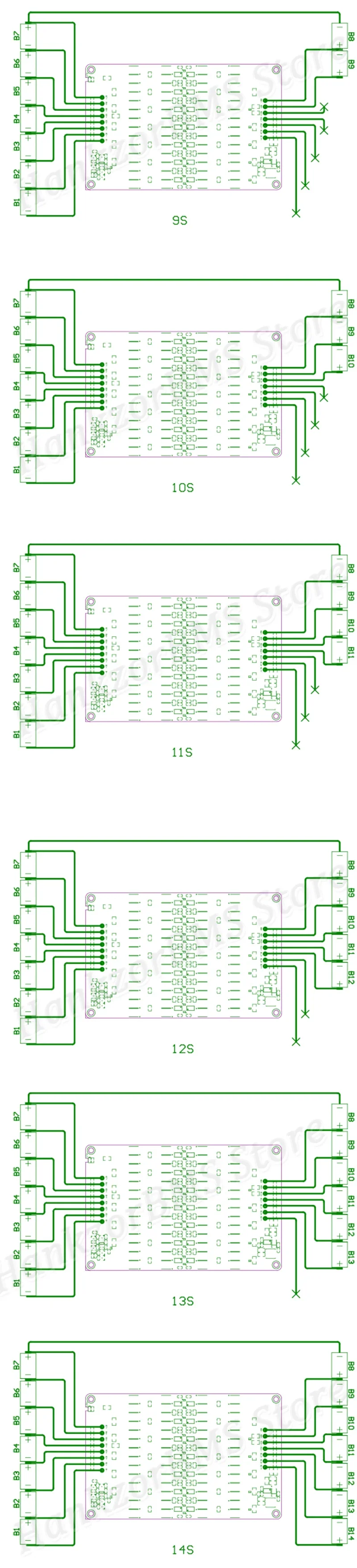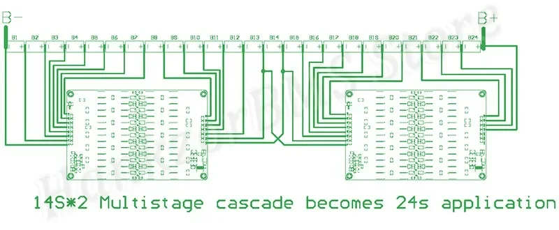 Support balanced cascading for battery packs, for example , it can cascade for 11S , 24S ,36S , 48S....and so on