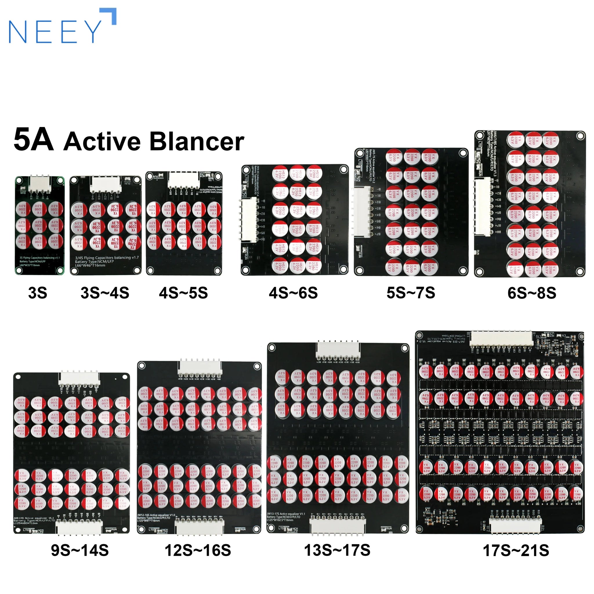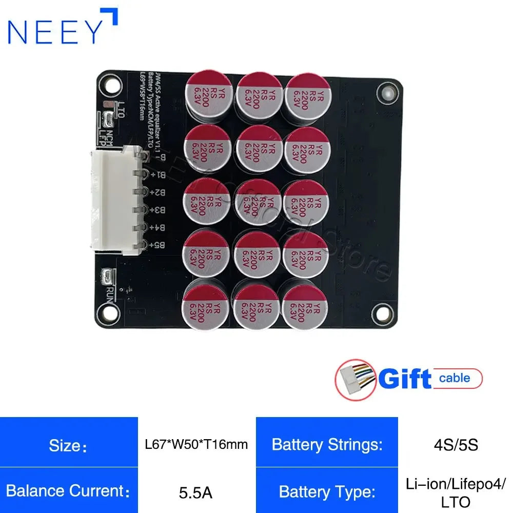 NEEY 5A Active Equalizer Balancer 3S 4S 5S 6S 7S 8S 9S 10S 11S 12S 13S 14S 15S 16S 17S Lifepo4/lipo/lto Battery Energy Capacitor