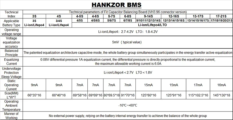 Equilibrium current 0-5.5A, the more balanced the battery, the smaller the current, with manual sleep switch, sleep current mode is less than 0.1mA, the balance voltage accuracy is within 5mv!