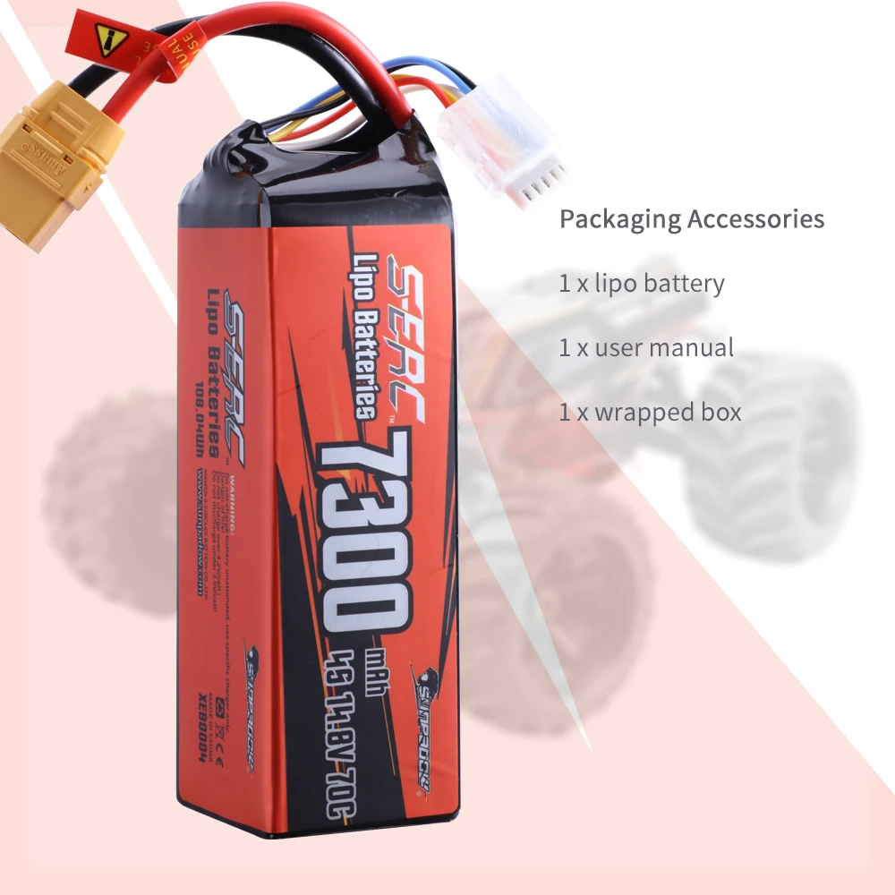 SUNPADOW 4S 14.8V Lipo Battery 7300mAh 70C Soft Pack with XT90 Plug for RC Vehicles Buggy Truggy Crawler Monster Truck Car Hobby