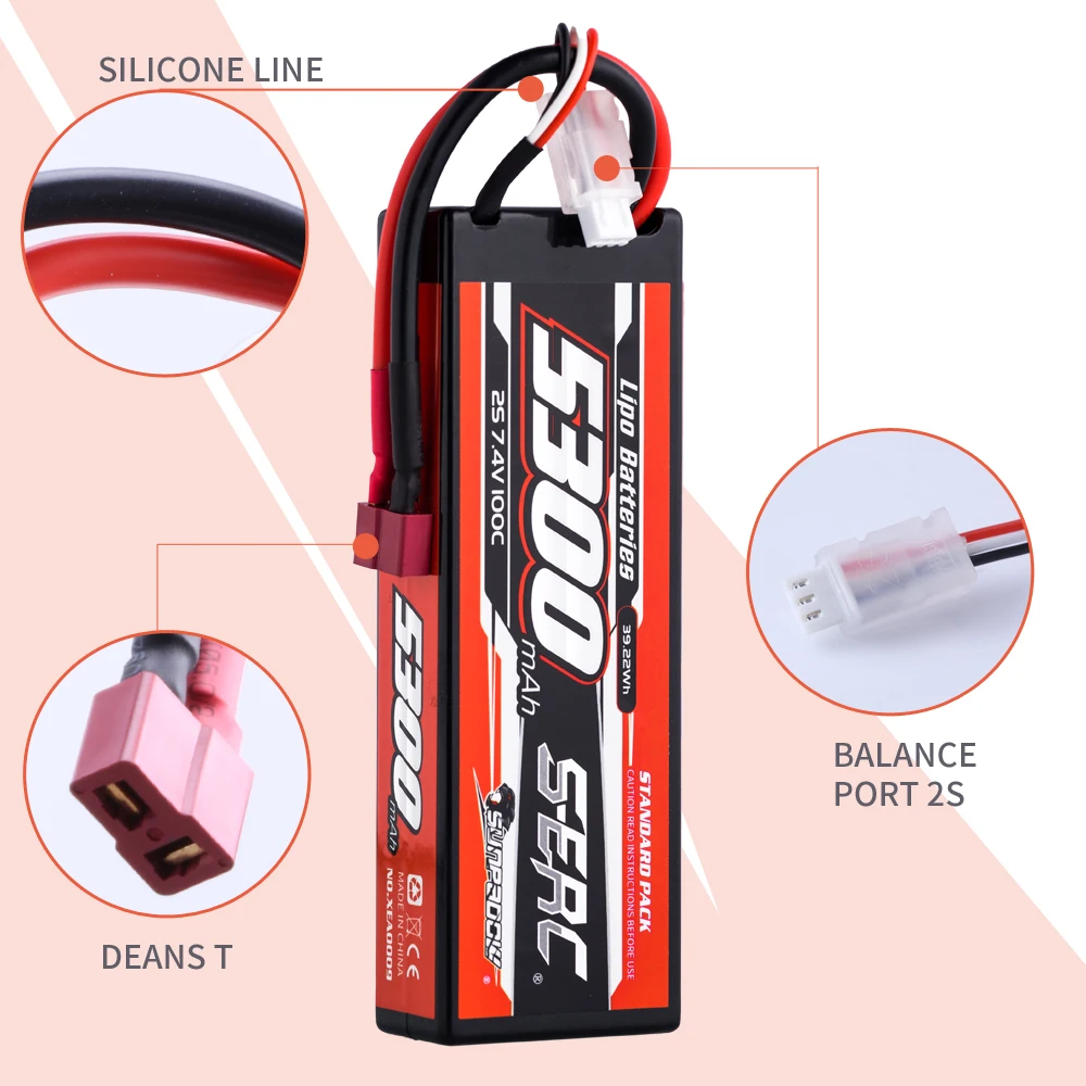 SUNPADOW Lipo Battery 5300mAh 2S 3S 4S 7.4V 11.1V 14.8V EC5 Plug 100C for RC Car Plane DJI Truck Tank Buggy Racing Boat Models