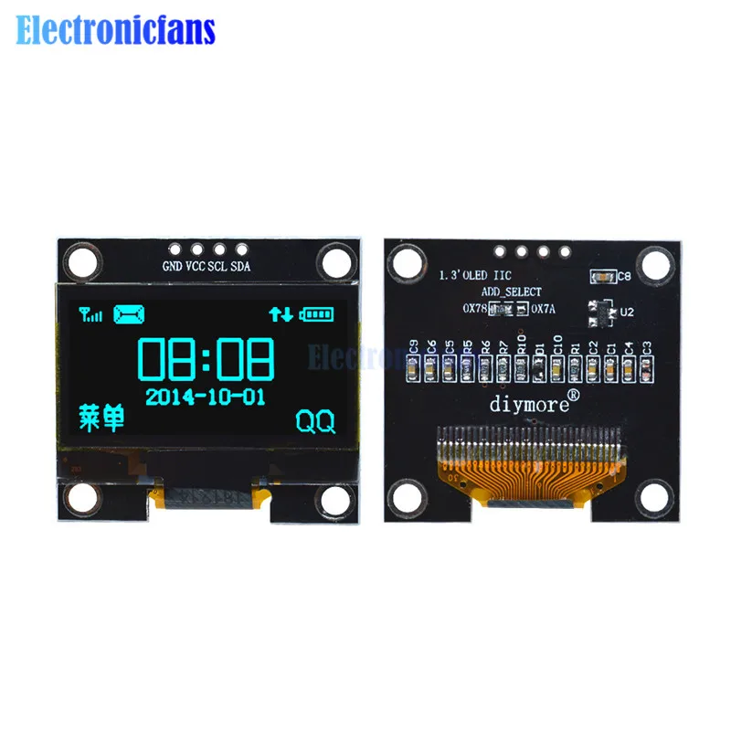 1PC*1.3" White OLED LCD Display Module IIC I2C Interface 128x64 3-5V For Arduino