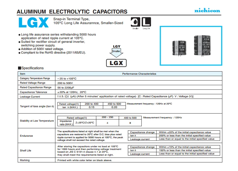 2Pcs/10Pcs 100uF 500V Nichicon GX/LQ 22x40mm 500V100uF Snap-in PSU Capacitor LGX2H101MELZ40