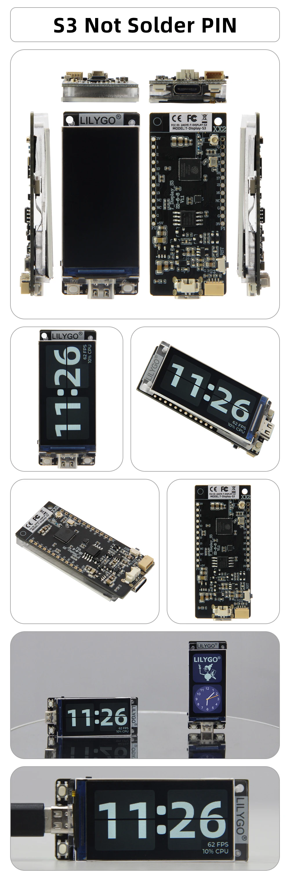 LILYGO® T-Display-S3 ESP32-S3, ST7789 1.9 Inch LCD Display Development Board, Wi-Fi Bluetooth Module, Flash 16MB, Custom Button