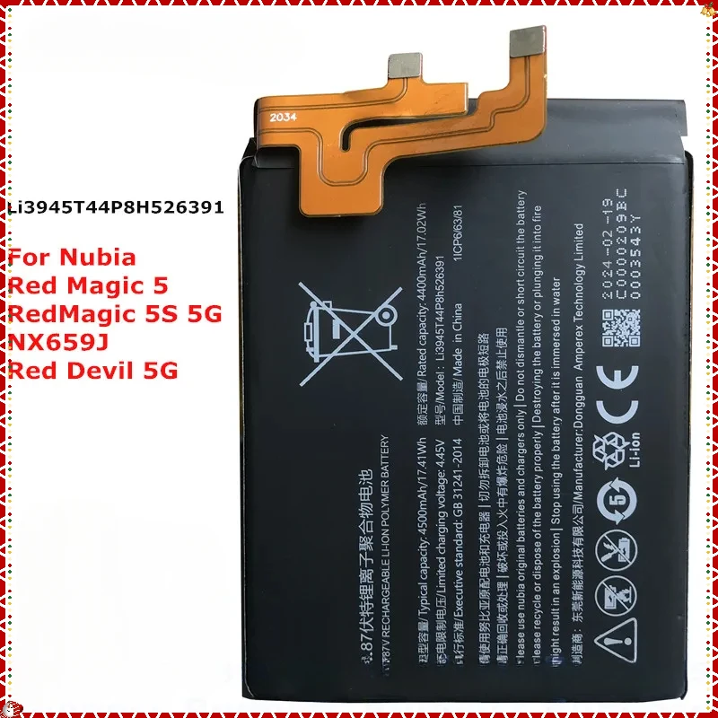 Li3945T44P8H526391 4500mAh Battery for ZTE Nubia Red Magic 5 , RedMagic 5S 5G , NX659J , Red Devil 5G Mobile Phone