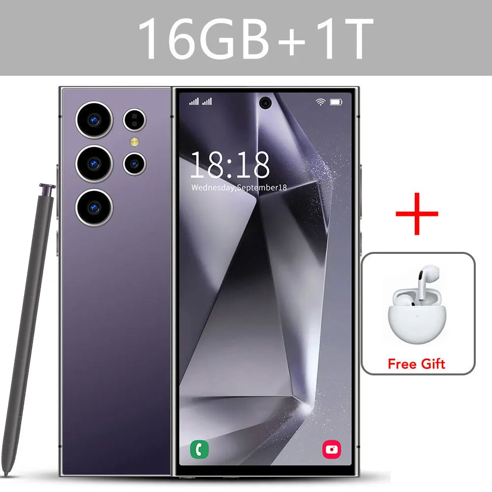 SMS 24 Ultra High-end Mobile Phone 16GB+1TB Cellphone 7800mAh Global Version HD Cell Phone 5G Dual SIM Smartphone Face Unlocked