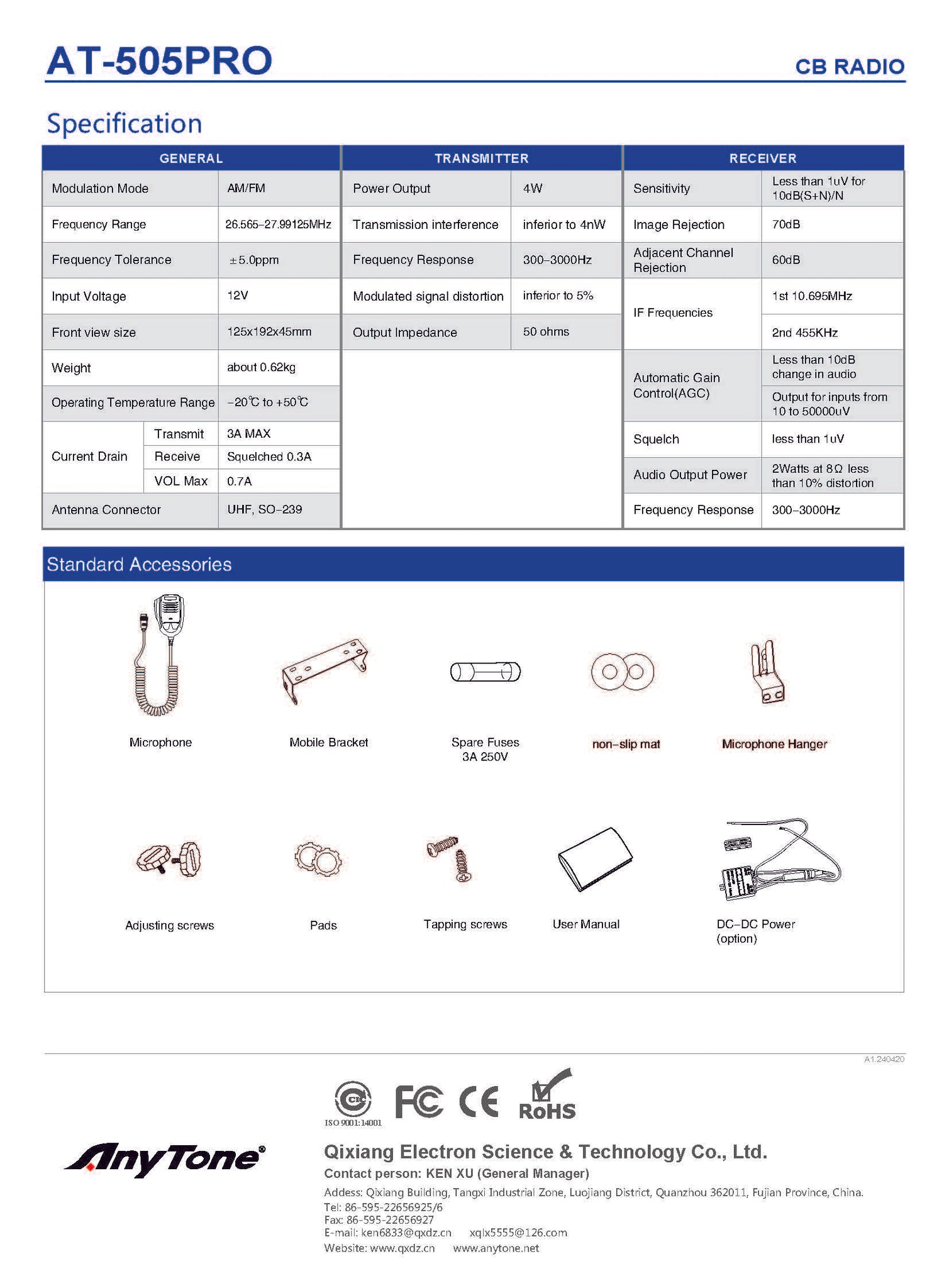 2024 New Anytone AT-505Pro CB Walkie Talkie 26.965-27.405MHz Truck Radio 40Channels AM/FM/PA Scan FunctionASQ/SQ/VOX Car Radio