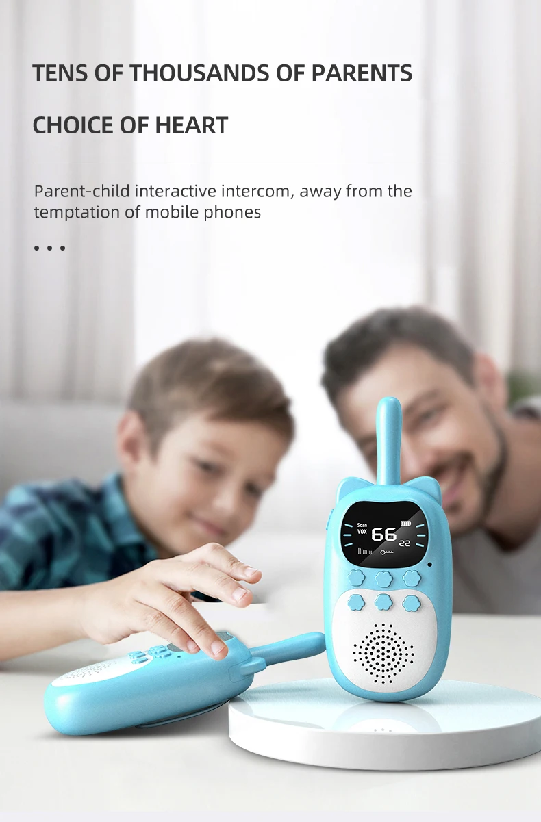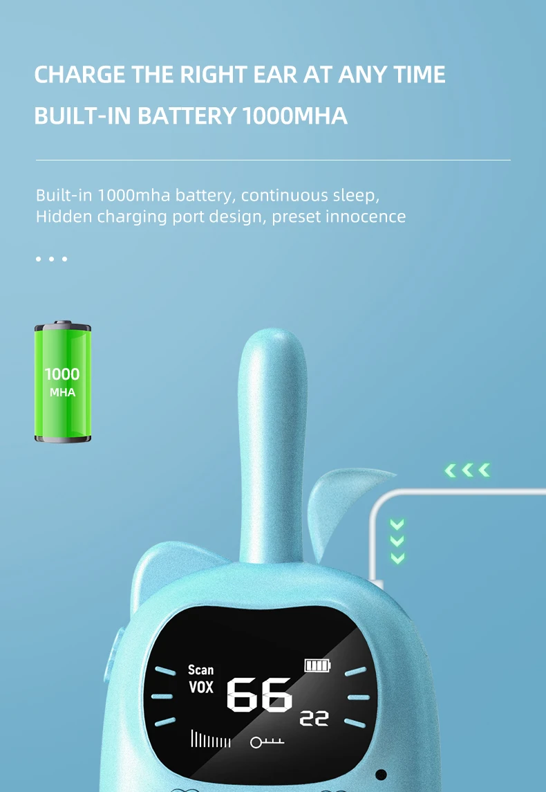 With built-in 1000mAh battery for kids’ walkie talkies, long working time and convenience for use.