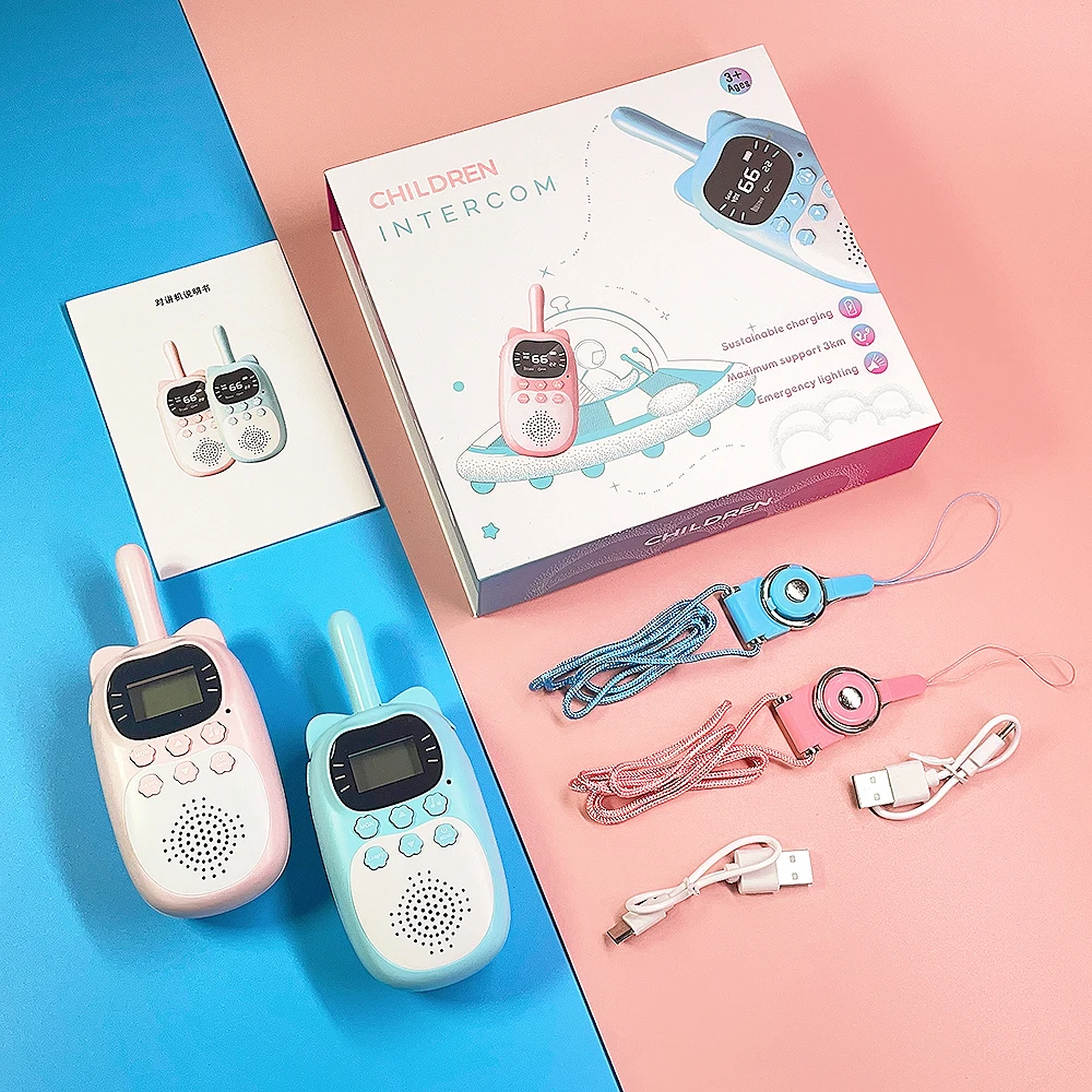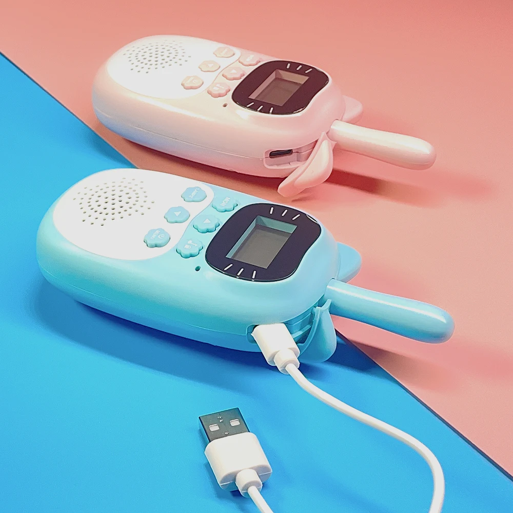2PCS Kids Mini Walkie Talkie Rechargeable 1000mAh Handheld 0.5W 3km Radio Transceiver Interphone Child Christmas Toys Gifts
