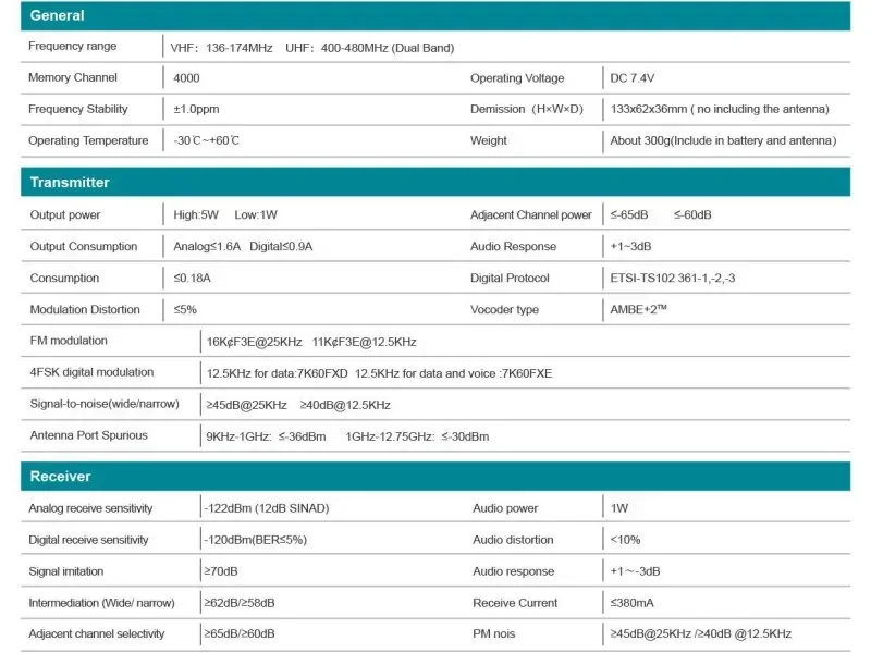 - Frequency Range: VHF 136-174MHz &UHF 400-480MHz
