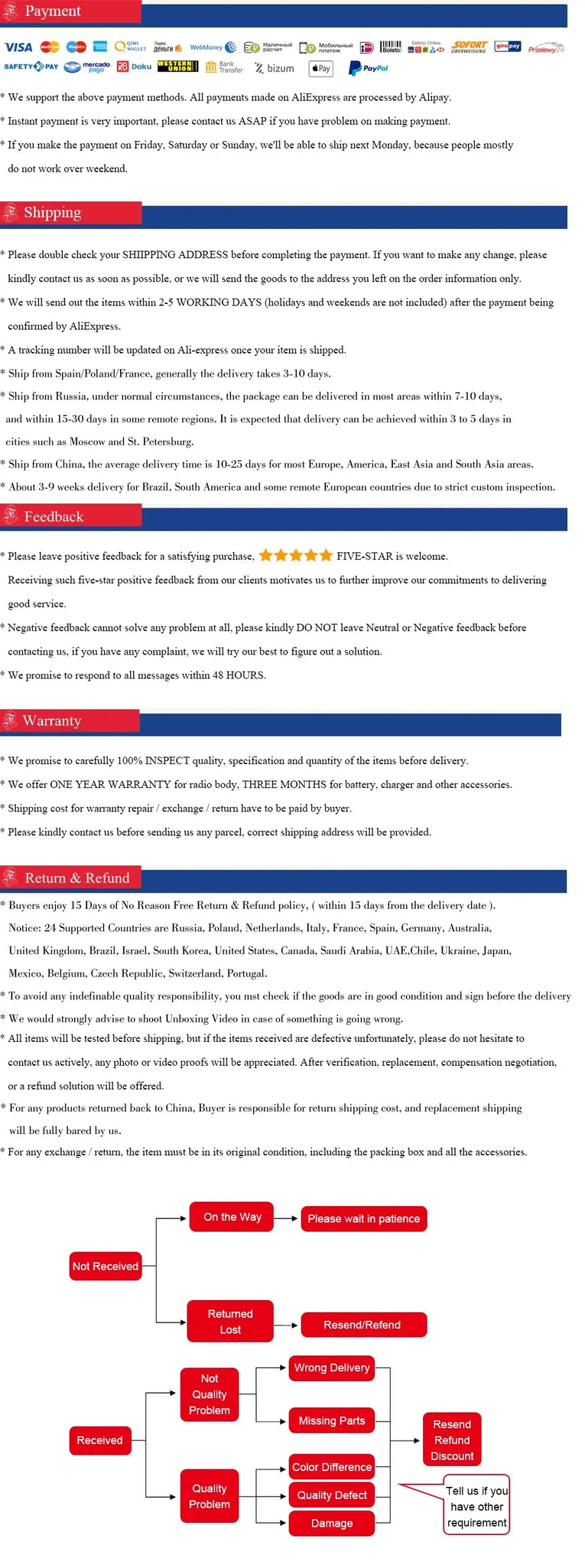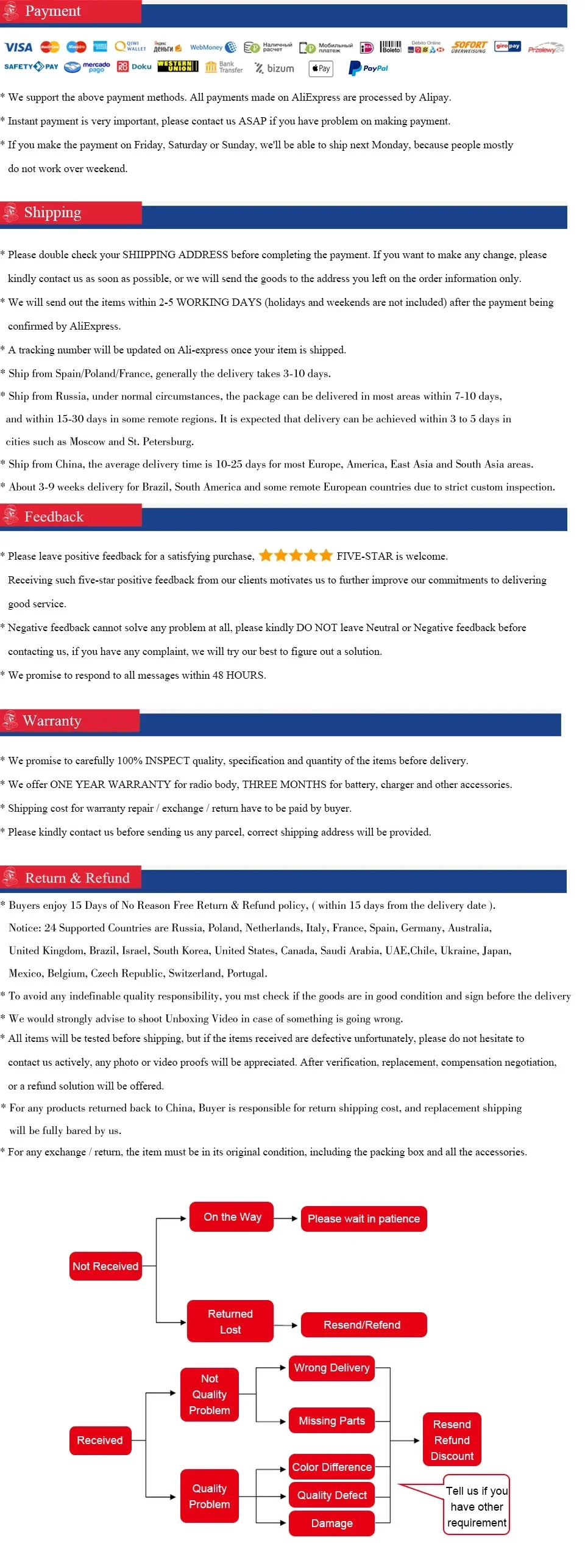 ⚠️ Please do not send items back without prior approval.