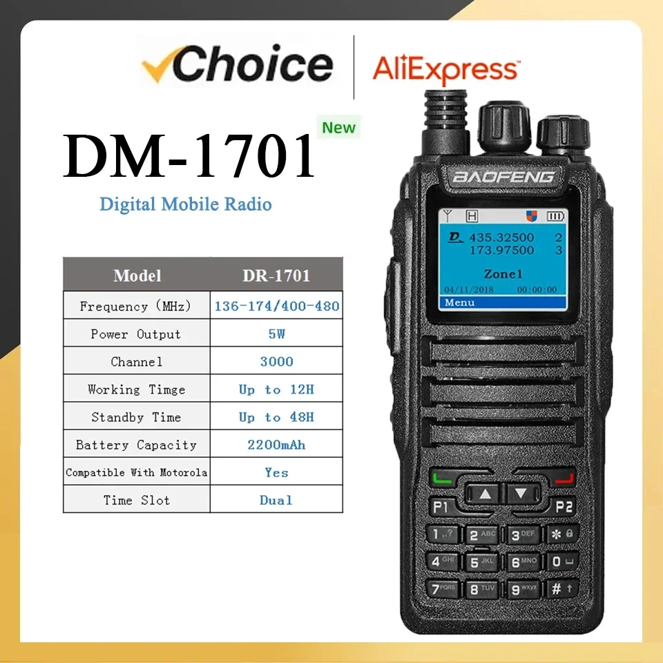 Baofeng Walkie Talkie DM-1701 DMR Dual Mode Analog and Digital Radios Tier 1&2 Dual-Time Slot DM1701 Ham Dual-Band DM-1801 DM-5R