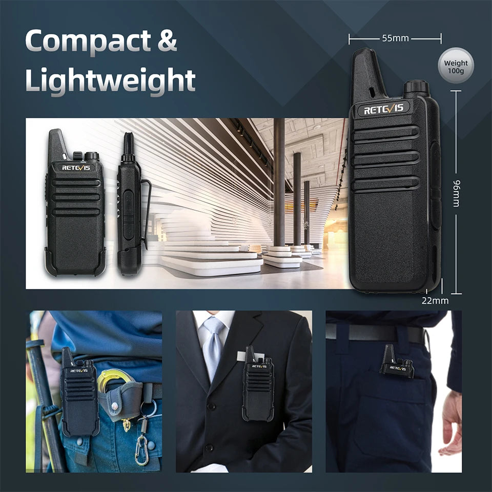 RETEVIS 2 pcs Mini Walkie Talkie PMR 446 Portable Two-way Radio ht PTT Walkie-talkies RT622 Portable Radio for Hunting Cafe RT22