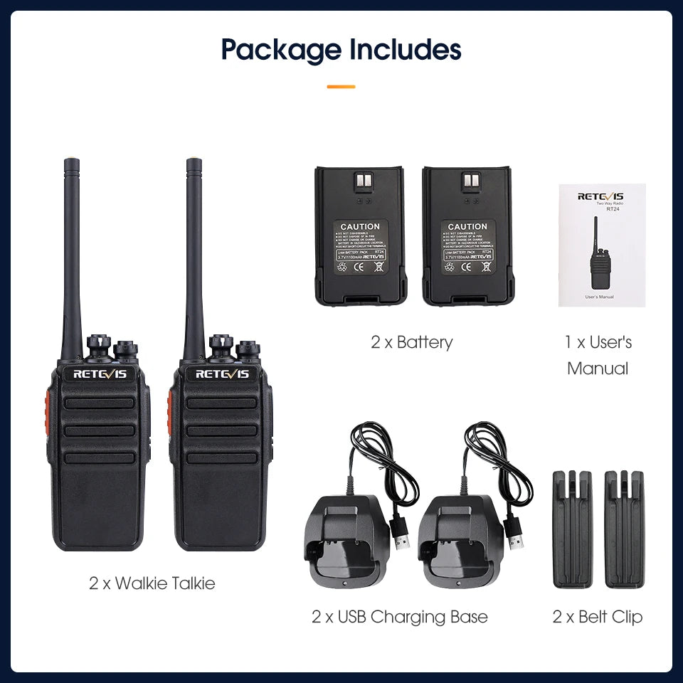 Retevis Walkie Talkie 2 Pcs RT24 PMR 446 Rechargeable Professional Talkie Walkie Long Range H777S Two-Way Radio Communicator FRS