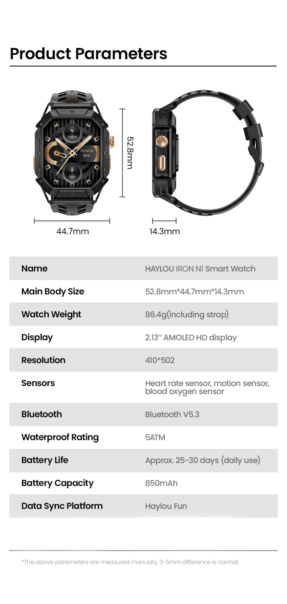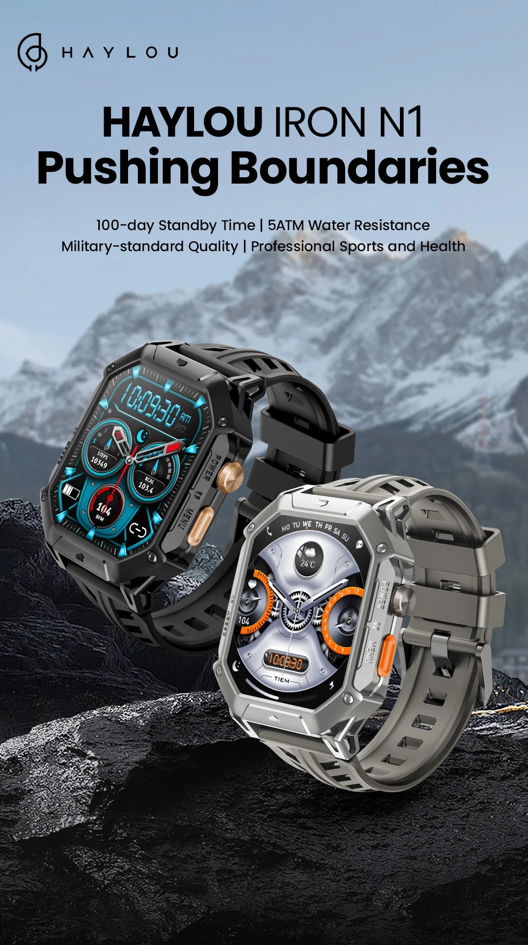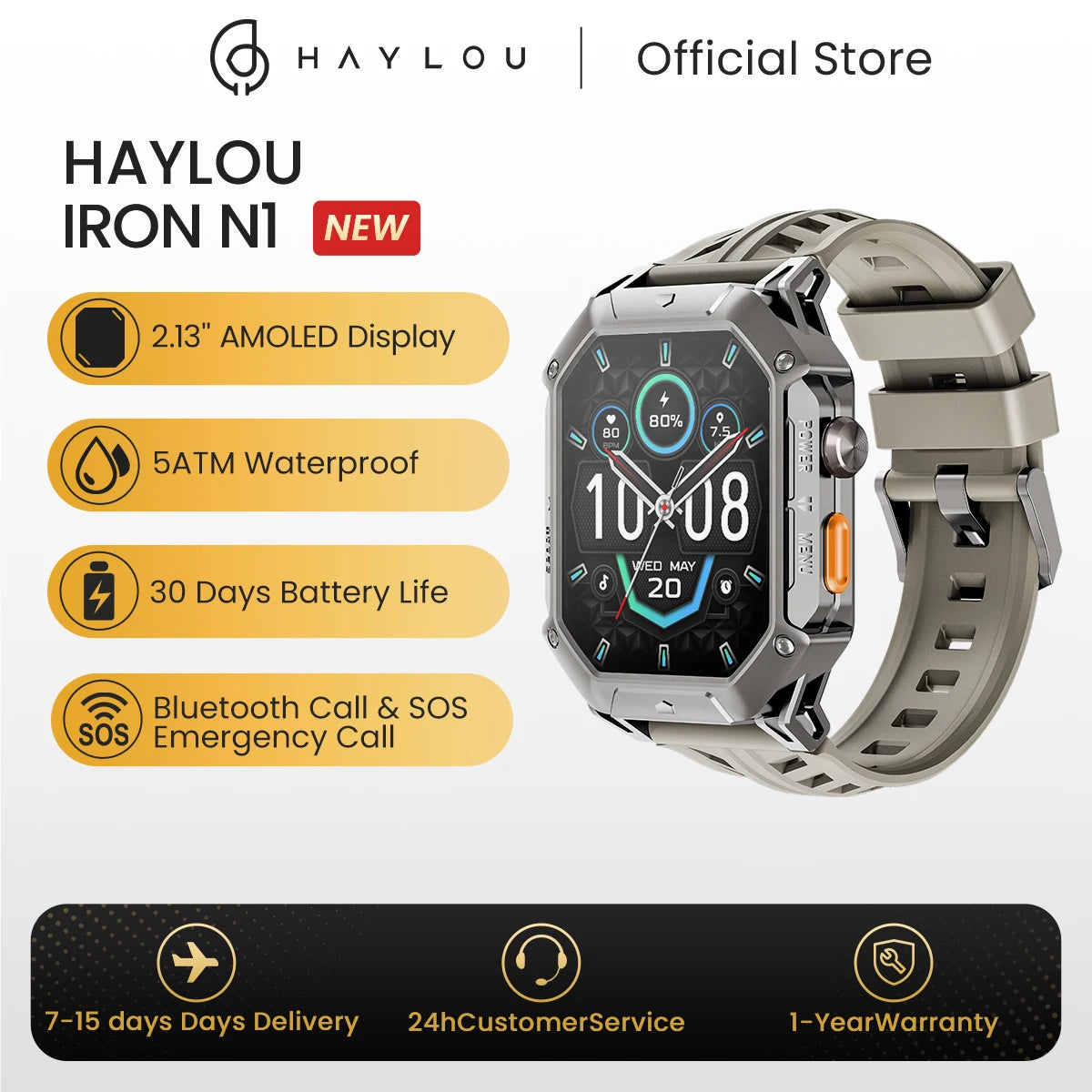 HAYLOU IRON N1 Smart Watch 2.13’’ AMOLED Display 5ATM Waterproof Bluetooth Call Sport Smartwatch for Outdoor 30 Days Battery Life