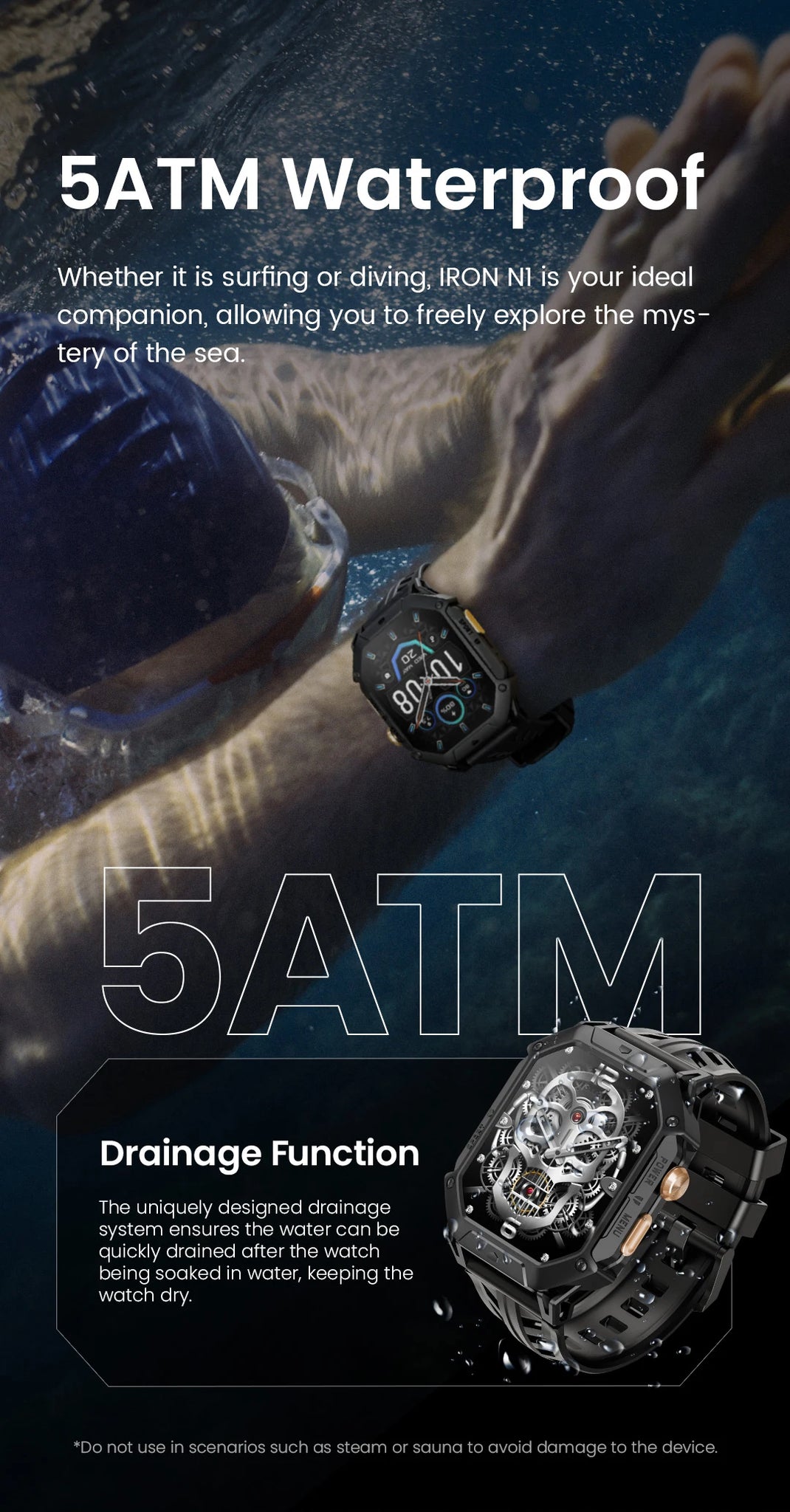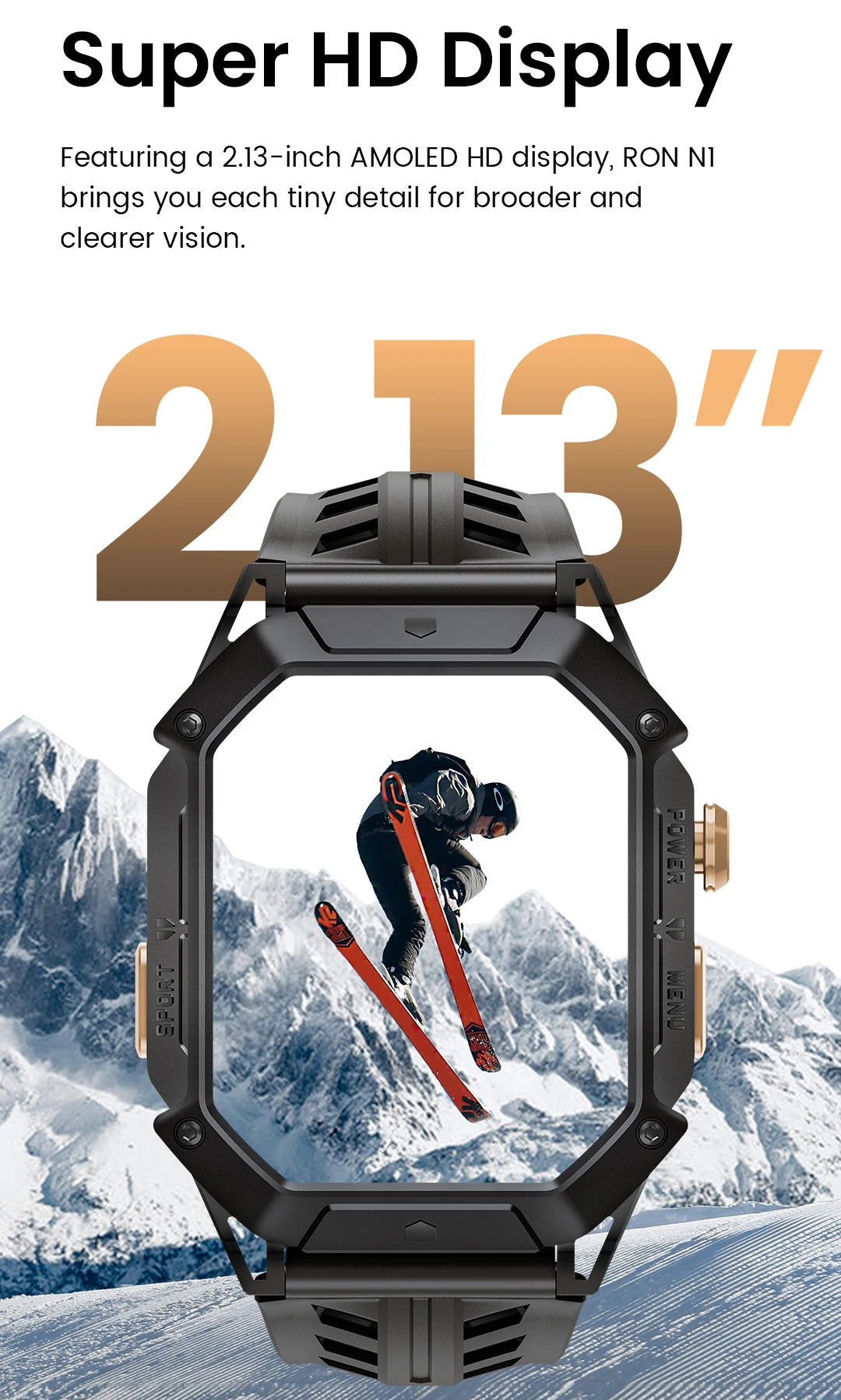 HAYLOU IRON N1 Smartwatchs 2.13’’ AMOLED Display 5ATM Waterproof Bluetooth Call Outdoor Sport Smart Watch 30 Days Battery Life