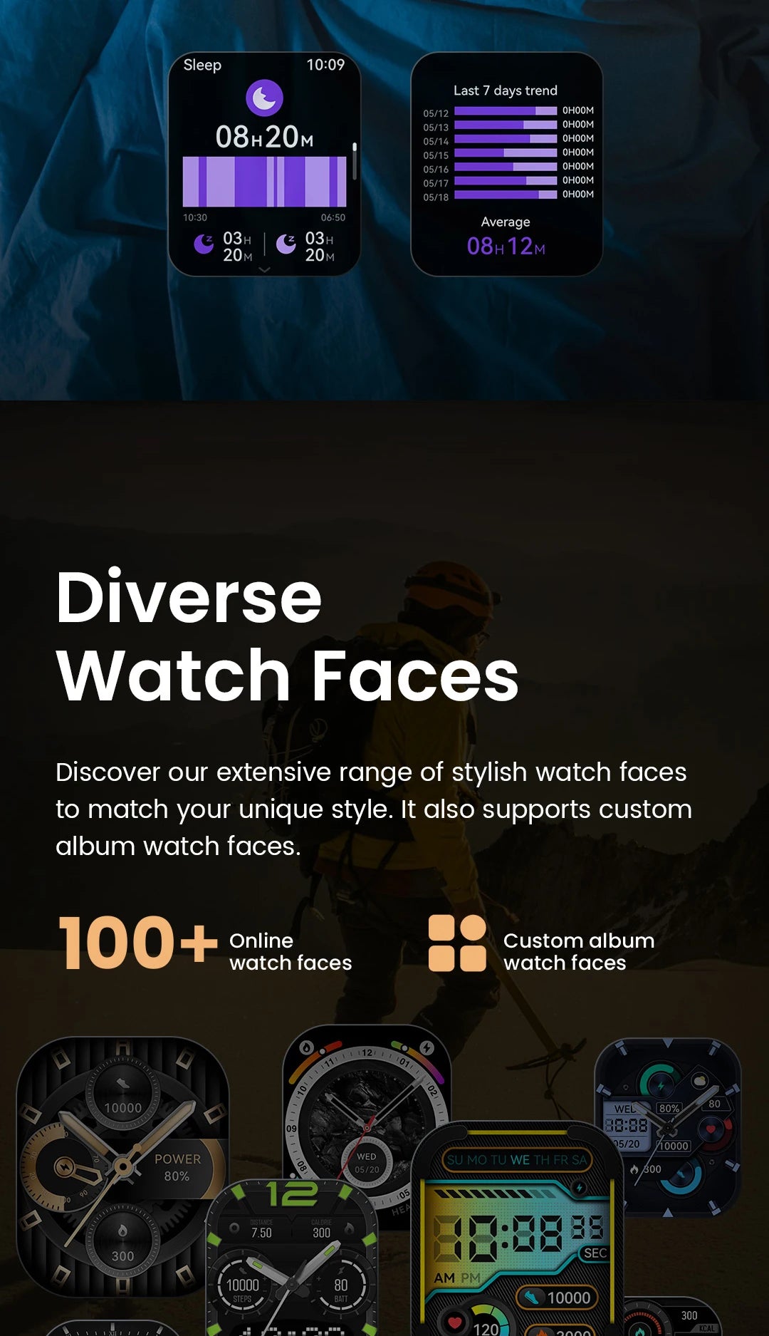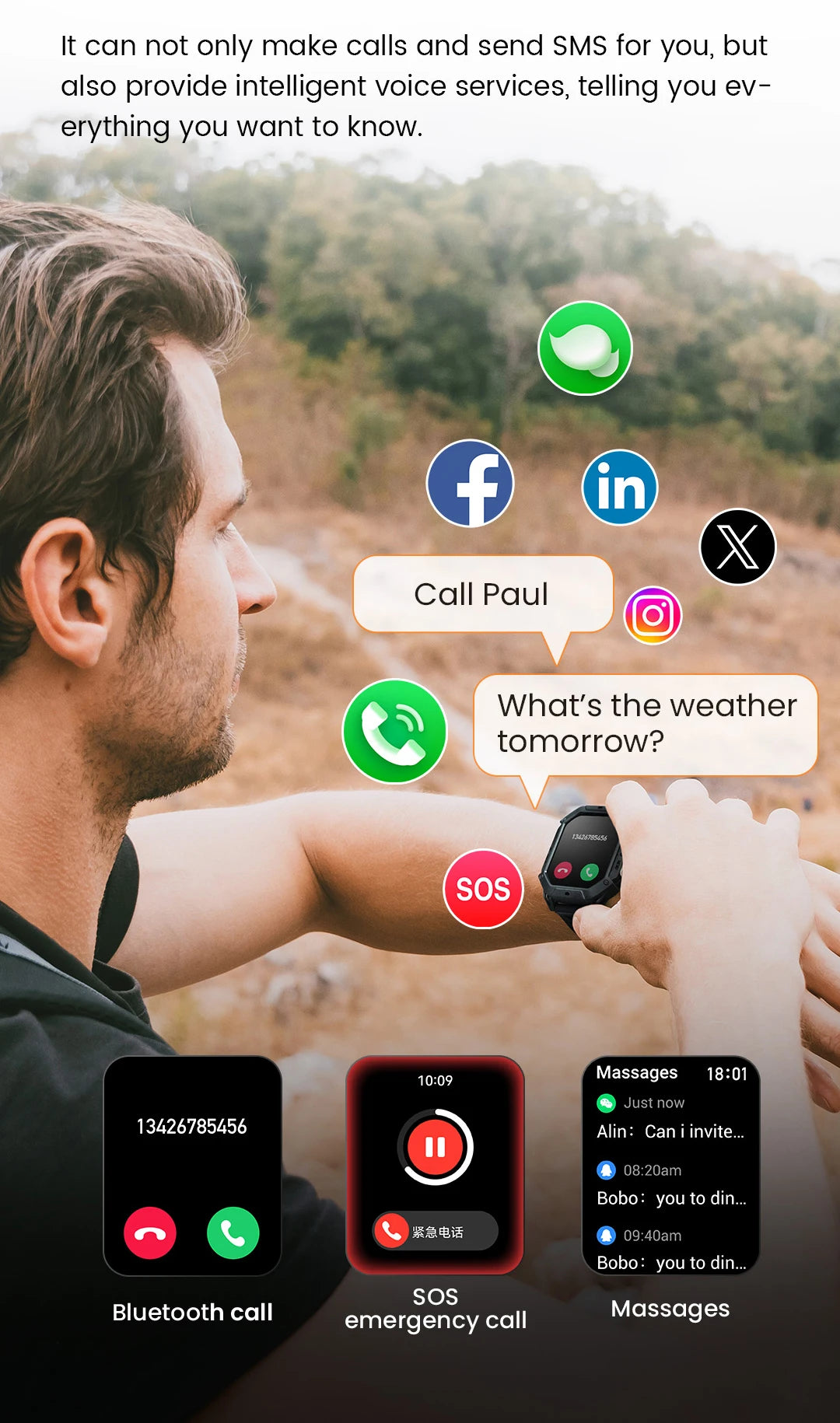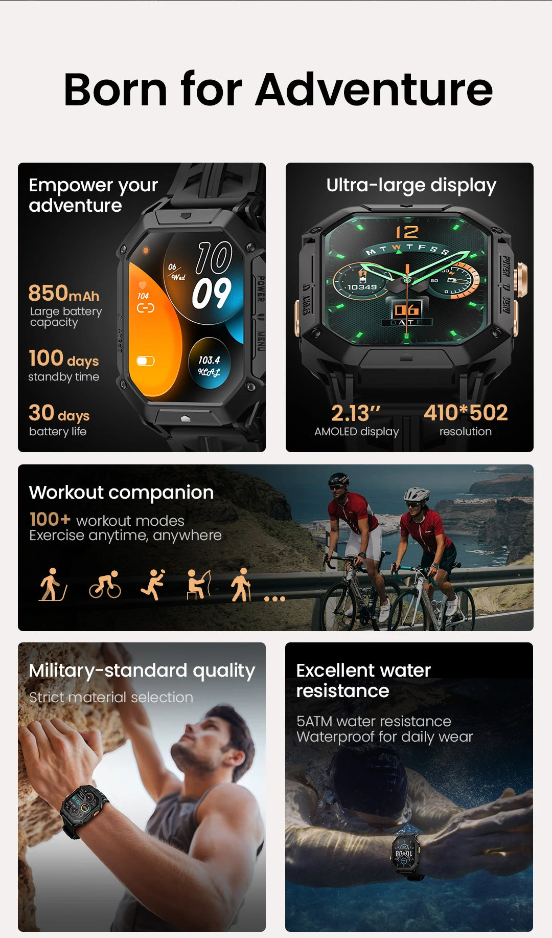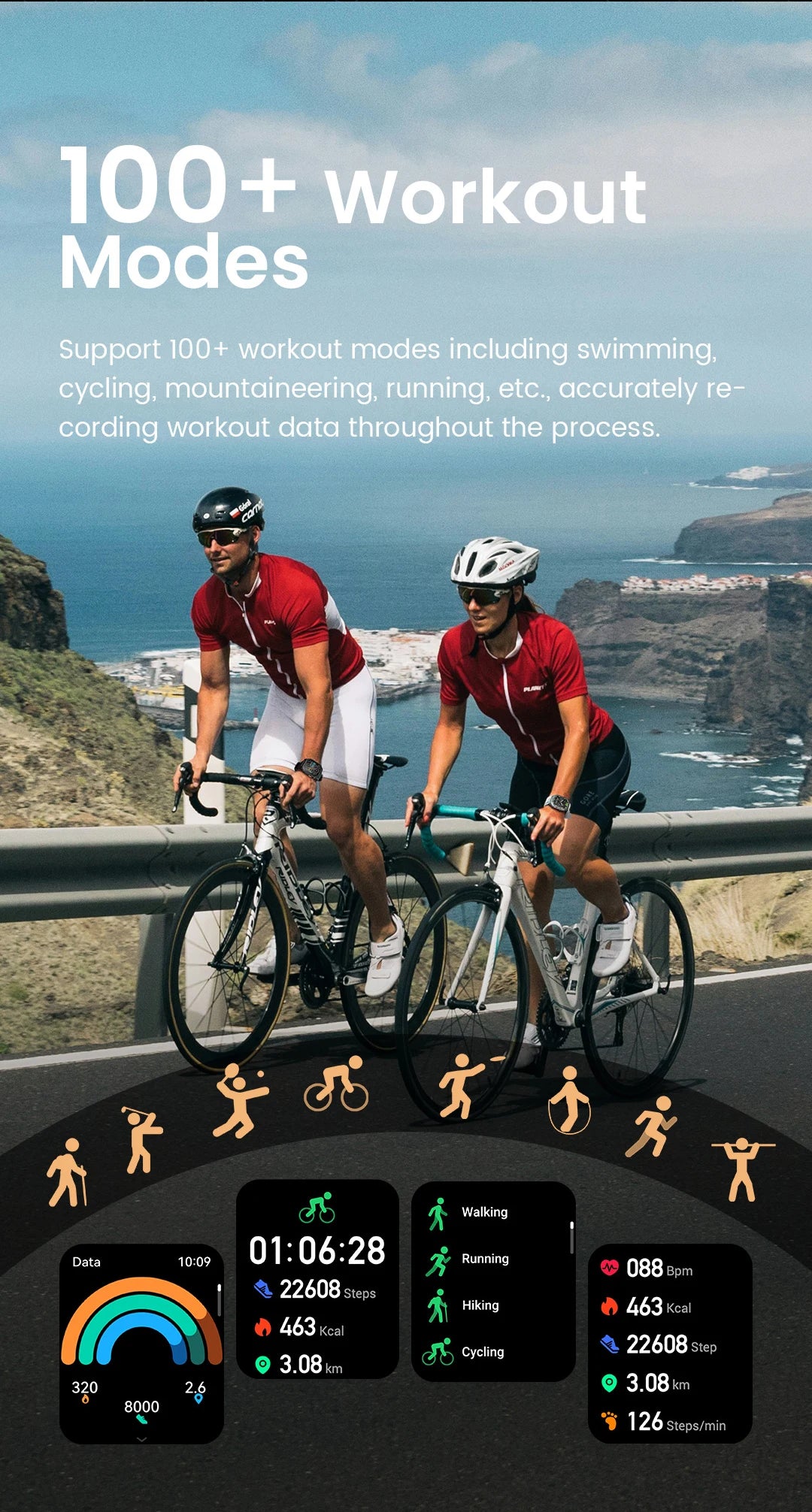 100 Workout Modes │ 100+ Watch Faces │ 5ATM Waterproof │ SOS Emergency Call │ Bluetooth V5.3