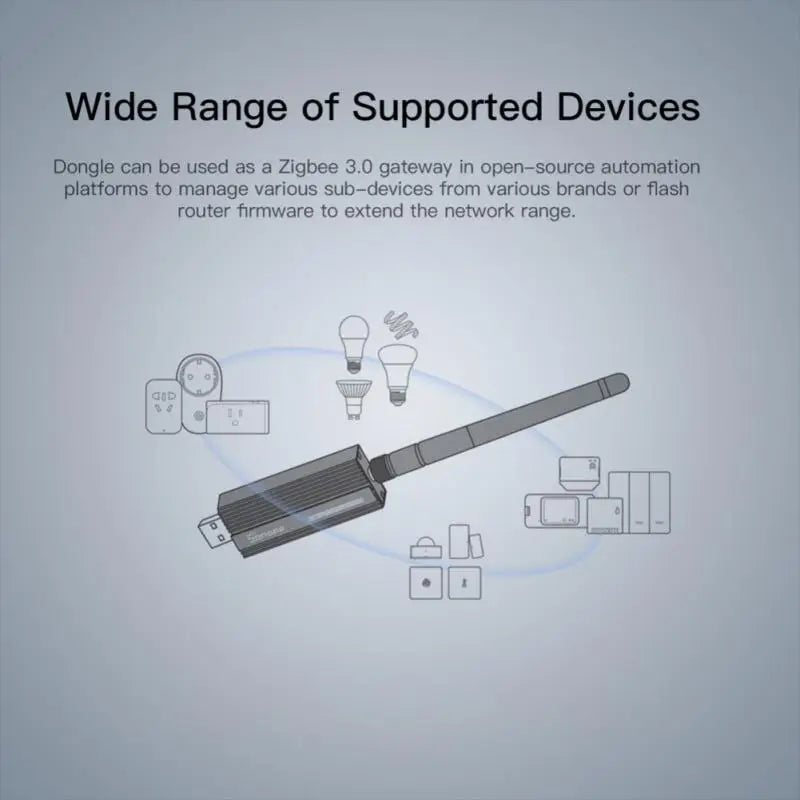 Dongle can be used as a Zigbee 3.0 gateway in open-source automation platforms to manage various sub-devices from various brands or flash router firmware to extend the network range.