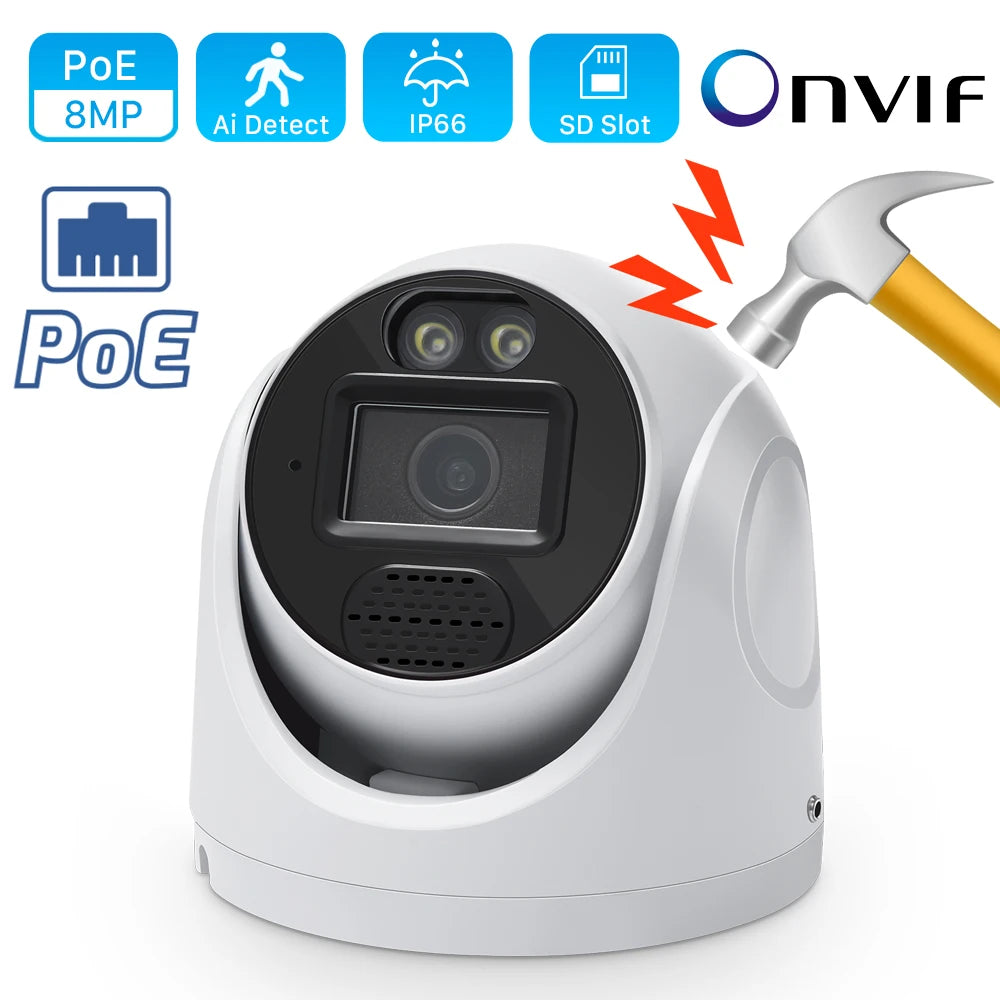 POE 4K 8MP IP Camera Outdoor Wide Angle 2.8mm Audio Onvif H.265 AI Humanoid detection Home CCTV Surveillance Camera SD Card Slot