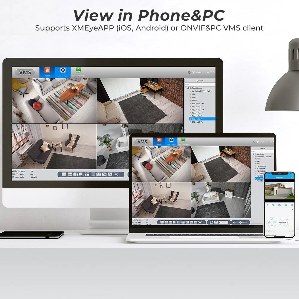 Support various mobile monitoring(iPhone,Android) by XMEye or iCSee