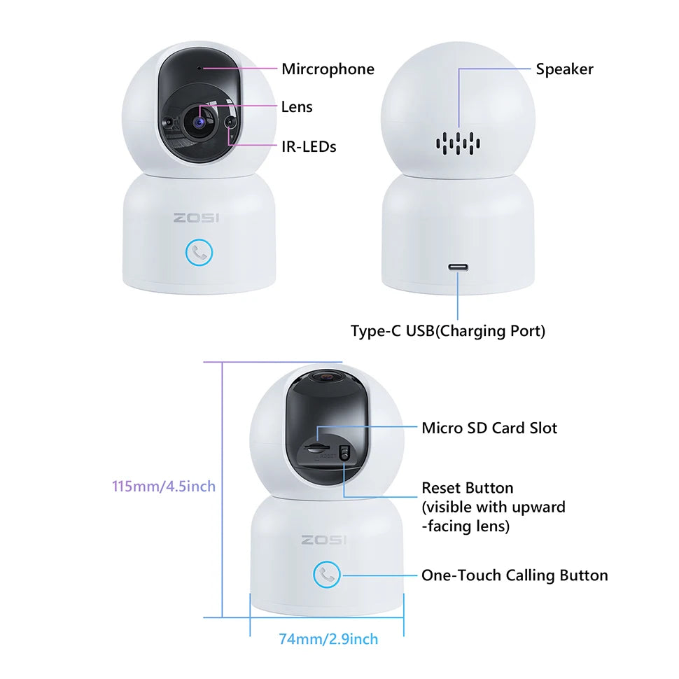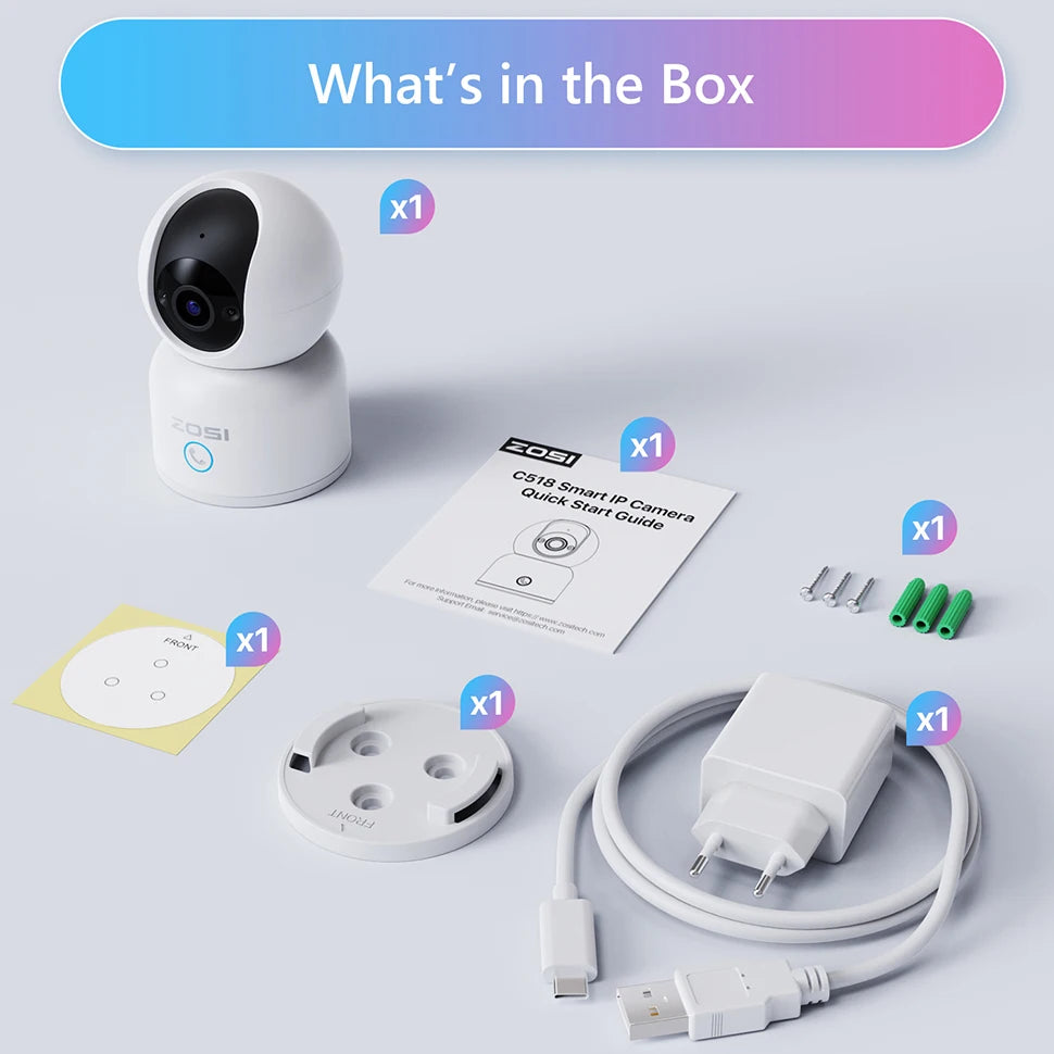 ZOSI C518 Indoor Pan/Tilt Smart Security IP Camera 2K 360° Baby Pet Monitor AI Human Tracking 2.4G/5G WiFi Surveillance Camera
