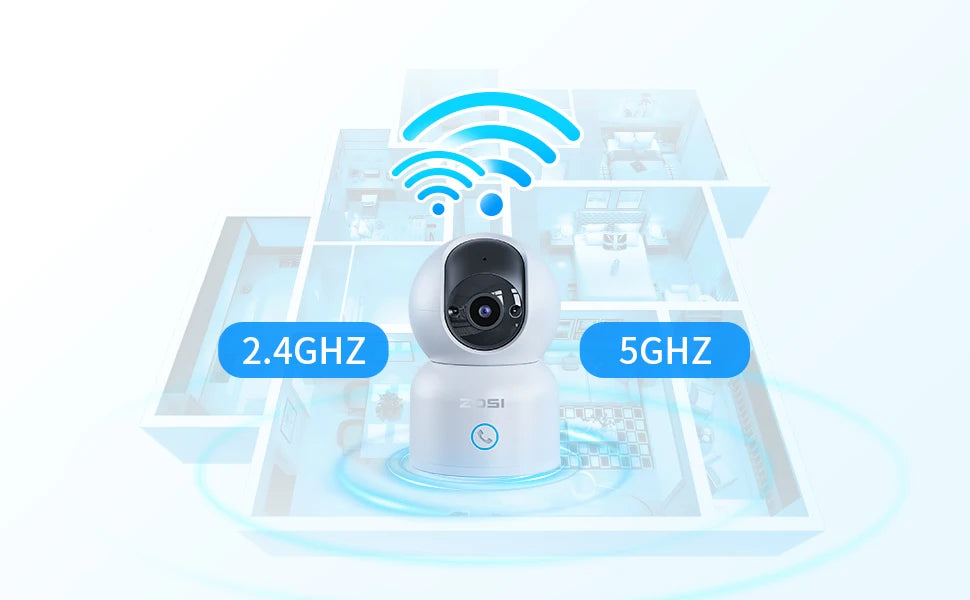 This indoor camera works on both 2.4GHz and 5GHz WiFi. Choose the WiFi band that suits your needs