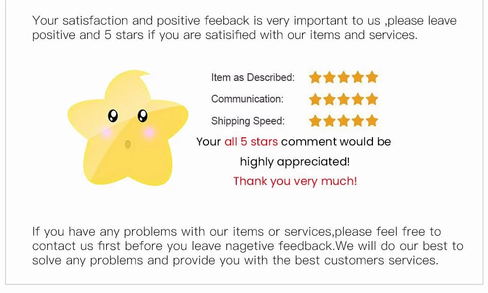 Five Stars Rating It will be highly appreciate is you can leave us a 5-star rating.