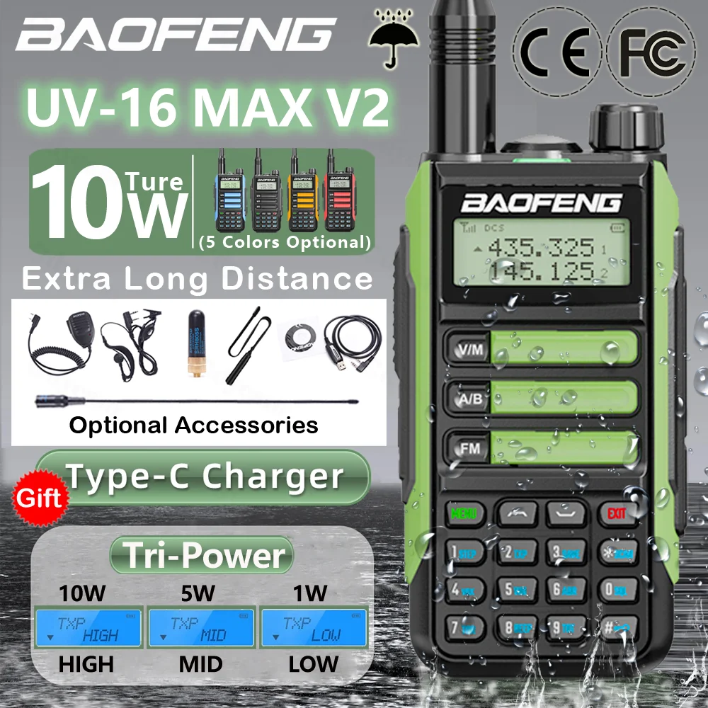 2025 Baofeng UV-16 Max IP68 Waterproof Walkie Talkie Dual Band High Power CB Radio Vhf Uhf CB Ham Radio Long Range Two Way Radio