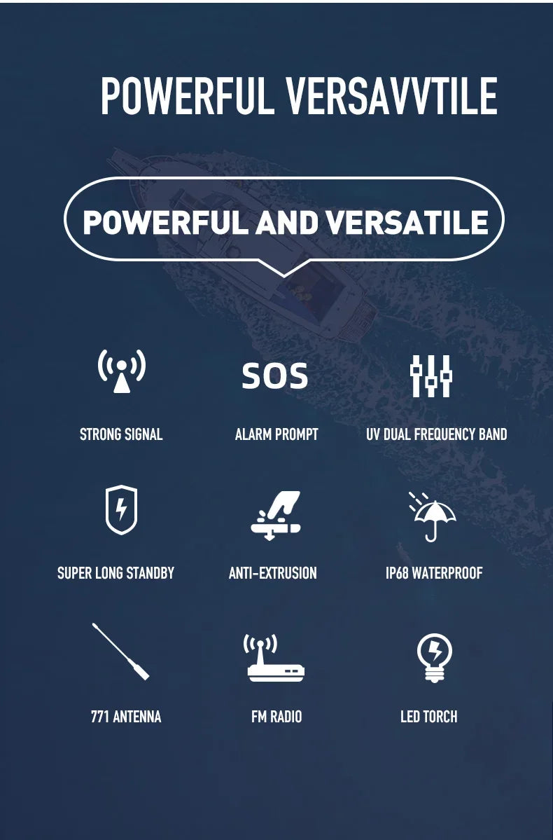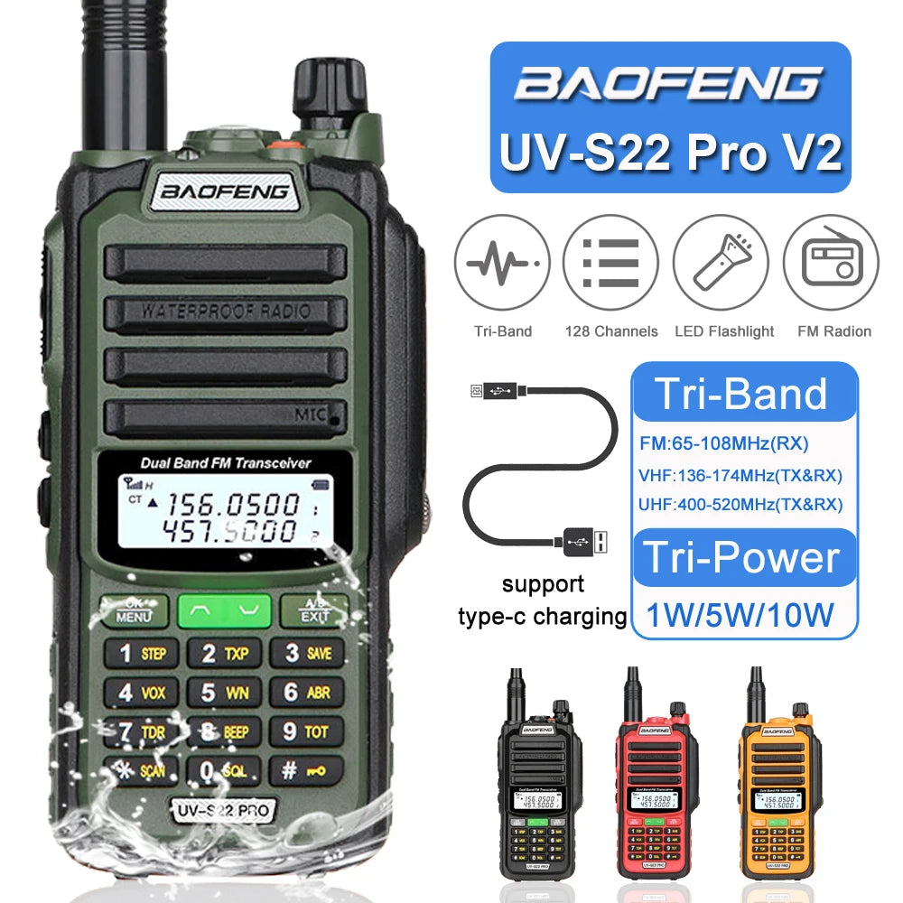 Baofeng UV-S22 PRO V2 IP68 Waterproof Walkie Talkie Dual Band 136-174/400-520MHz Ham Radio 10W Power 50KM Range 128CH FM Radio