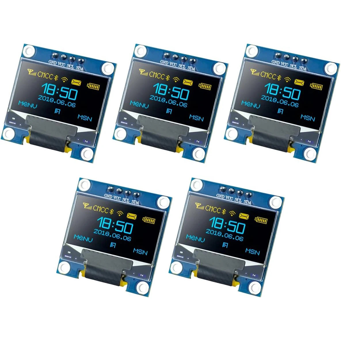 • 0.96 inch,Resolution: 128 x 64, View angle: > 160°, Support voltage: 3.3V-5V DC, Power consumption: 0.04W during normal operation, full screen lit 0.08W