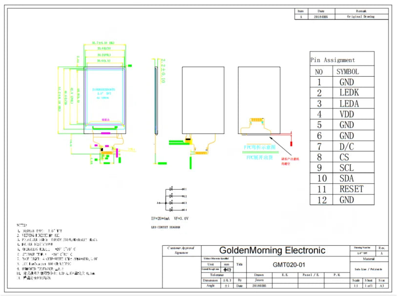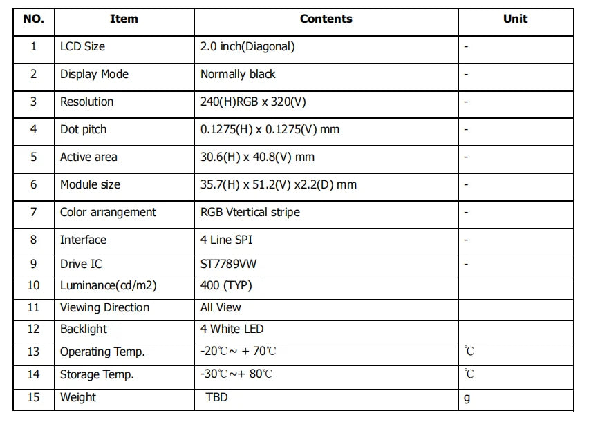 Model Number: 2.0 inch TFT module