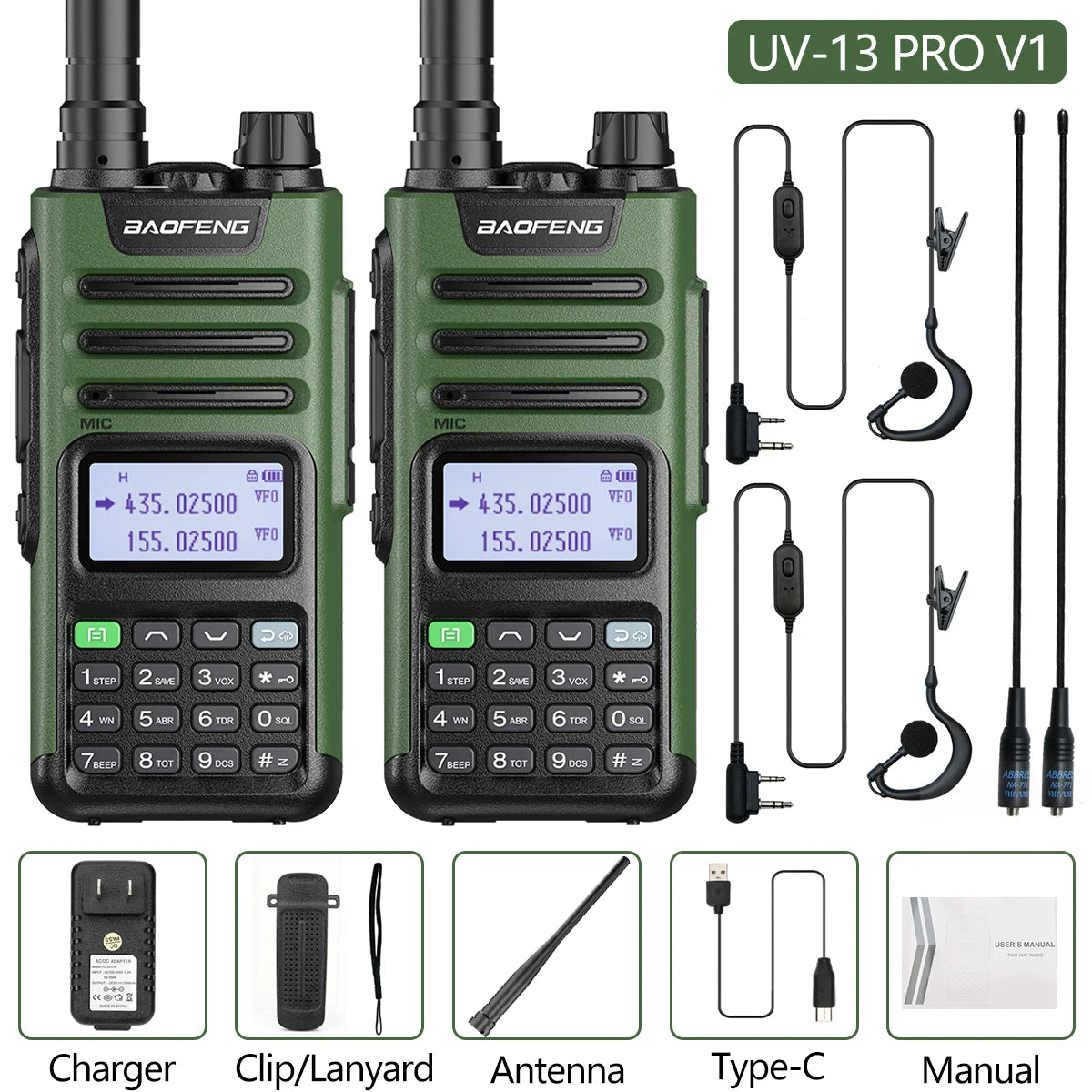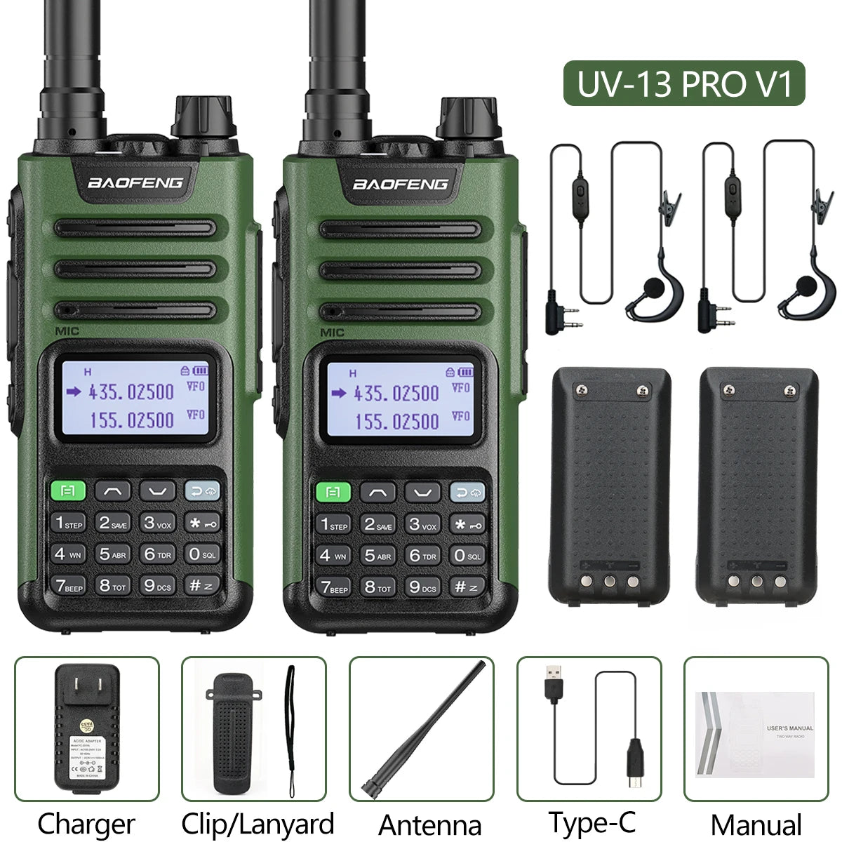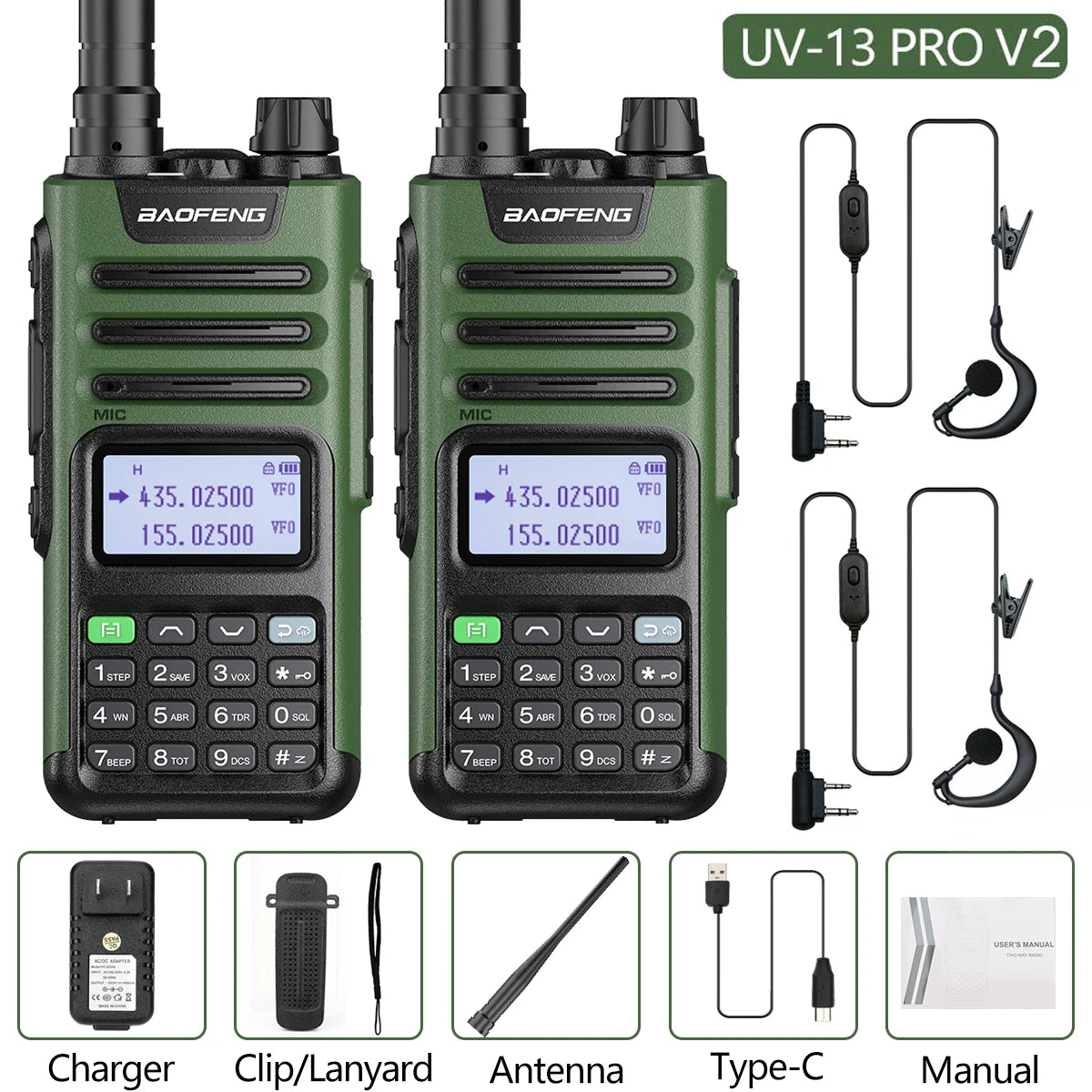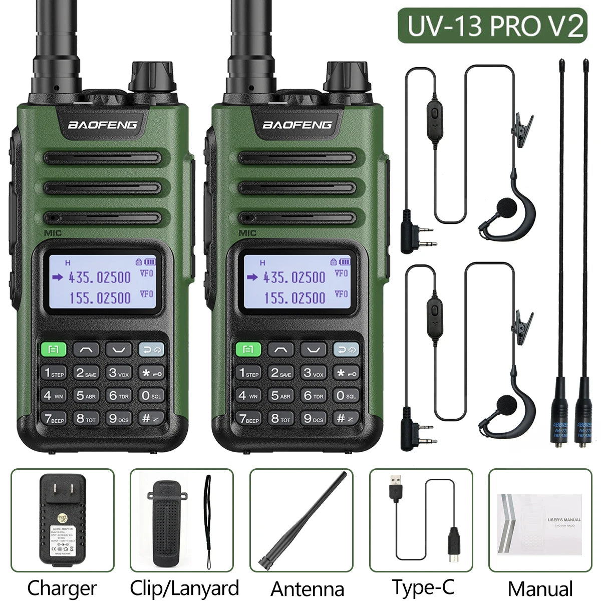 2PCS BAOFENG UV13 Pro V2 10W Waterproof Walkie Talkie UHF/VHF Dual Band UV13PRO with Typ-C Cable Upgrade of UV-10R Two Way Radio