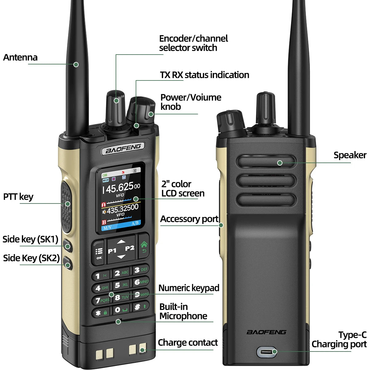 Baofeng UV-32 Walkie Talkie GPS 10W Wireless Bluetooth APP Programming Air Band Type-C NOAA for UV-5R Amateur Two Way Ham Radio
