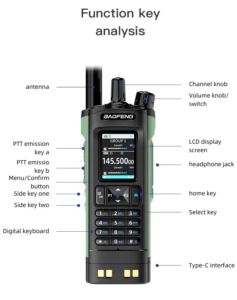 New BAOFENG UV-32 Walkie Talkie GPS 10W Bluetooth APP Programming Multi Band Wireless Copy Frequency Type-C UV32 Ham 2 Way Radio