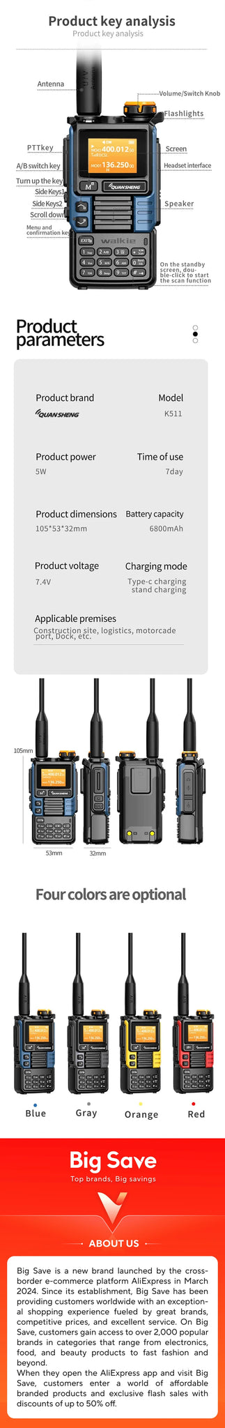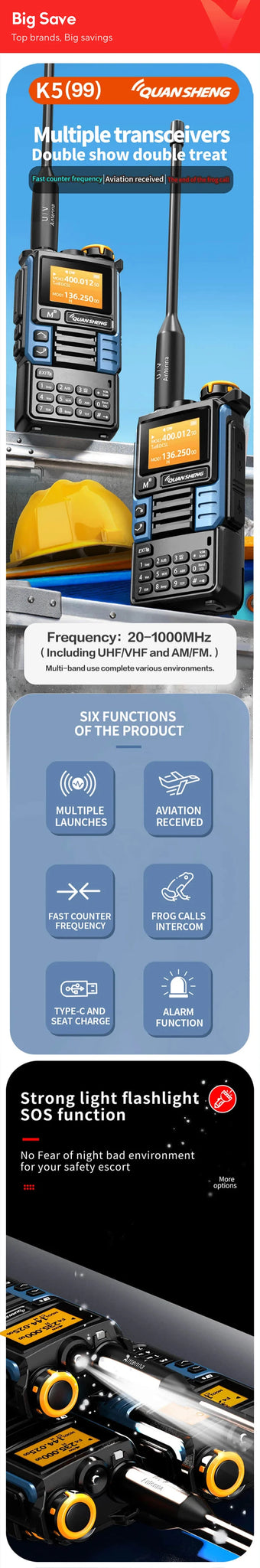 Quansheng UV-K6 Walkie Talkie 5W Air Band Radio Tyep C Charge UHF VHF DTMF FM Scrambler NOAA Wireless Frequency Two Way CB Radio