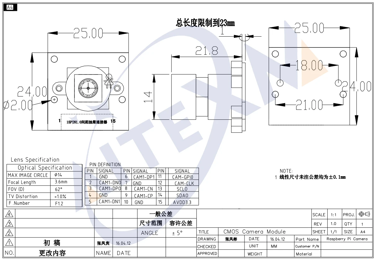 Supply Voltage: Raspberry Pi 4 Night Vision Fisheye Camera Module 5MP OV5647
