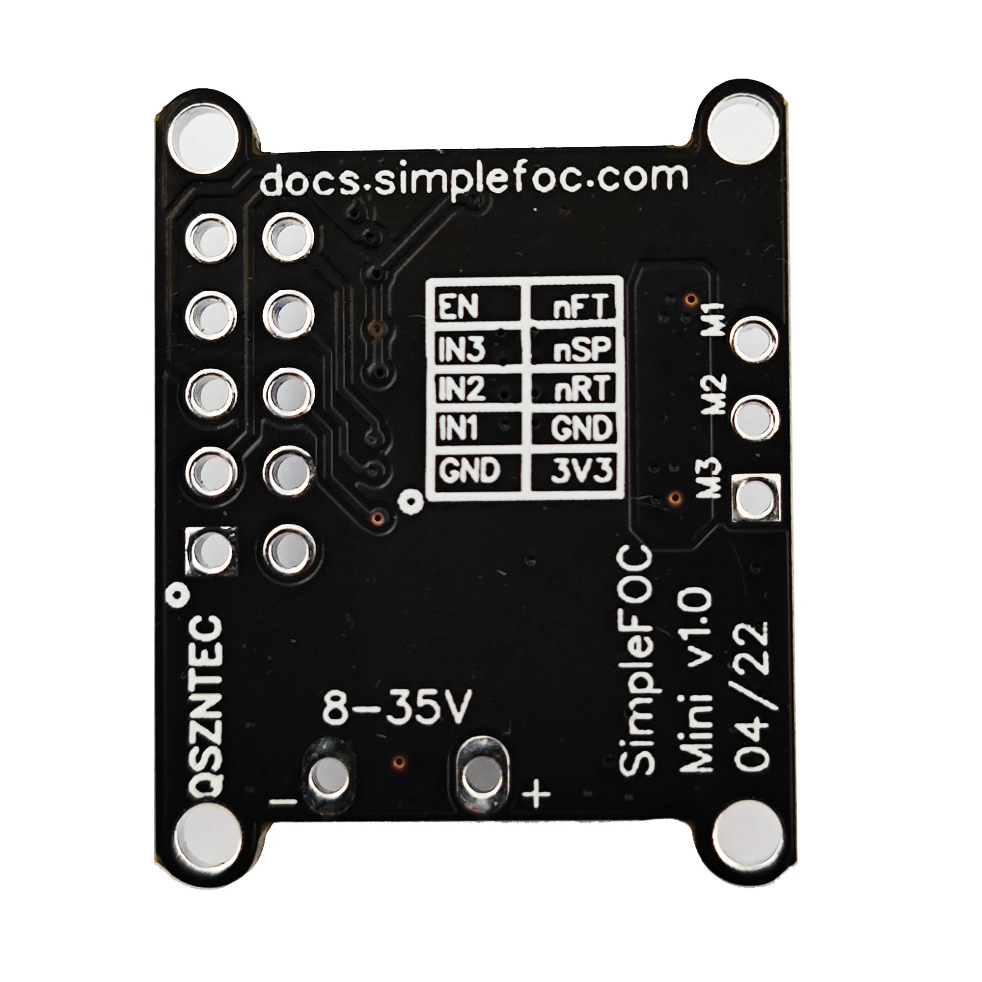 SimpleFOCMini DC brushless motor drive board adopts DRV8313 chips. DRV8313 provides three independently controllable semi H-bridge drivers, mainly used for Drive DC brushless motor. Just connect the control signal and motor UVW three-phase line to control The brake motor rotates. Support SPWM and SPVMW control algorithm, not traditional 6-step commutation control Algorithm. It can be quickly used through SimpleFOC.