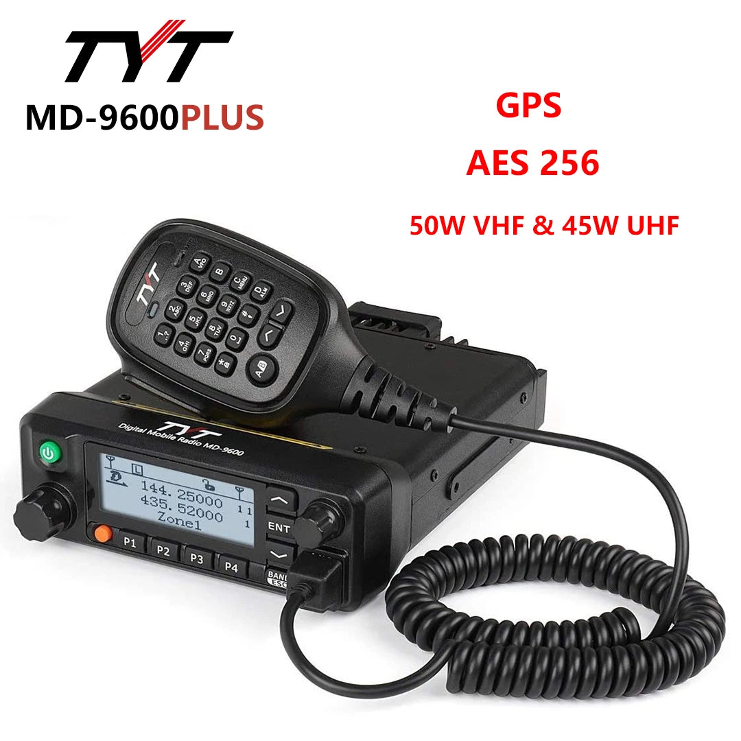 TYT MD-9600 PLUS GPS AES 256 Dual Band DMR Mobile Radio 50/45/25W Car Truck Transceiver 136-174MHz 400-480Mhz Amateur Radio