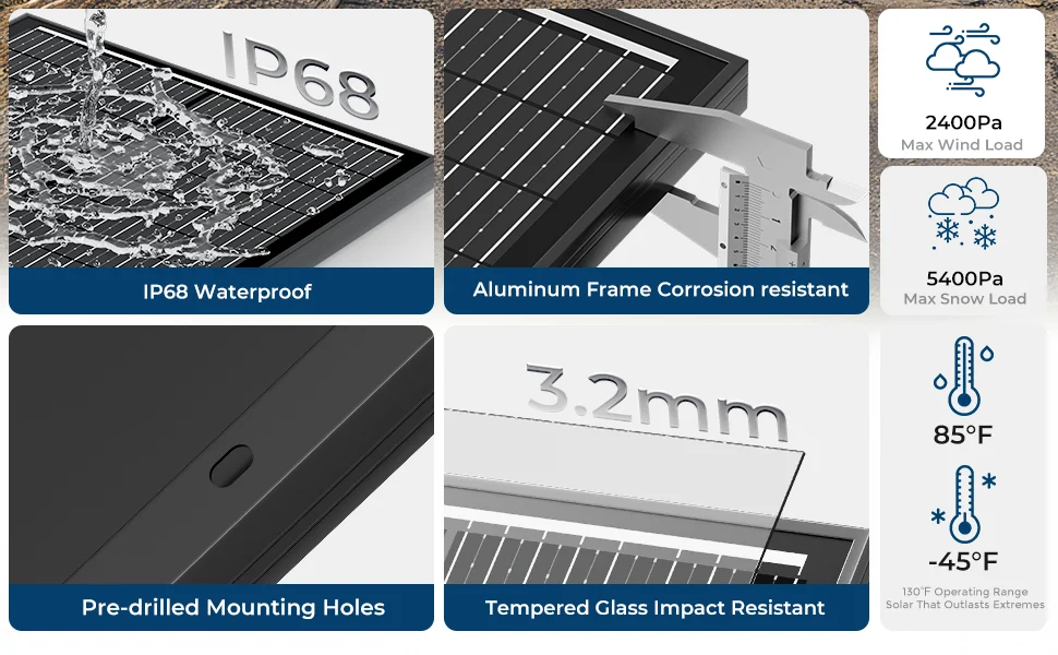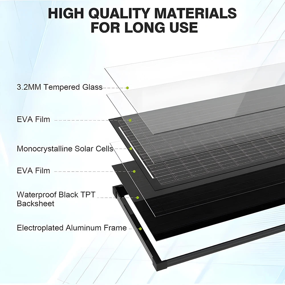 High conversion rate monocrystalline silicon solar panel, safe and durable.