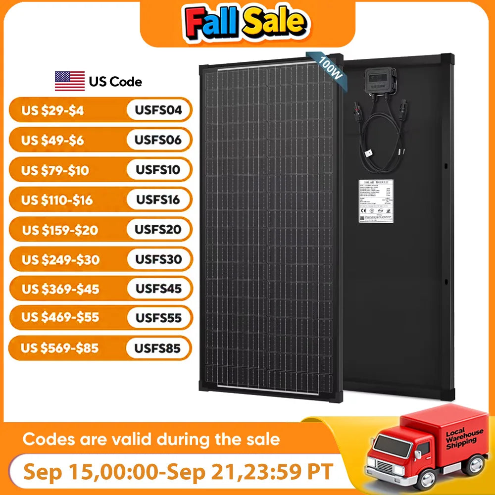 WERCHTAY 100W 12V 12BB Monocrystalline Solar Panel IP67 Waterwoof High-Efficiency & Easy to Install for RV Boat Roof Charging